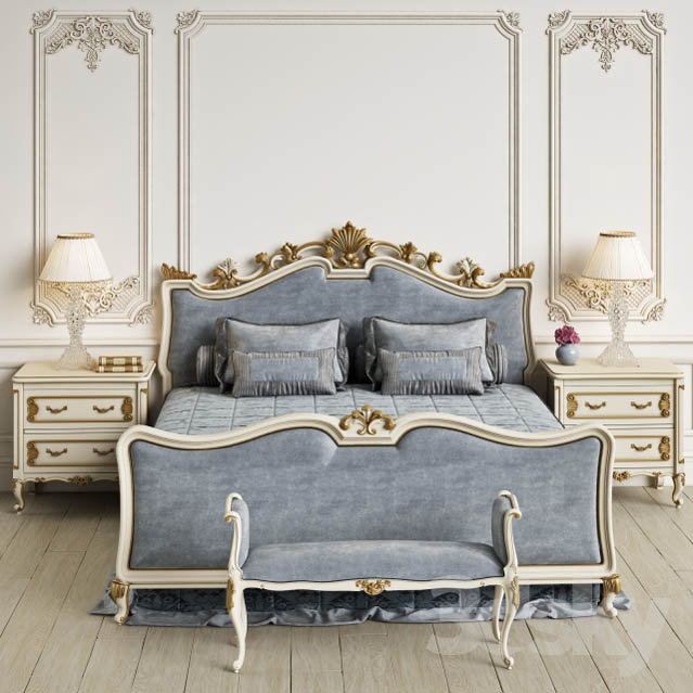 bed, nightstand, bench, lamp, molding, classic, the angelo cappellini, a blanket, pillow, provasi, bedroom, books, flowers