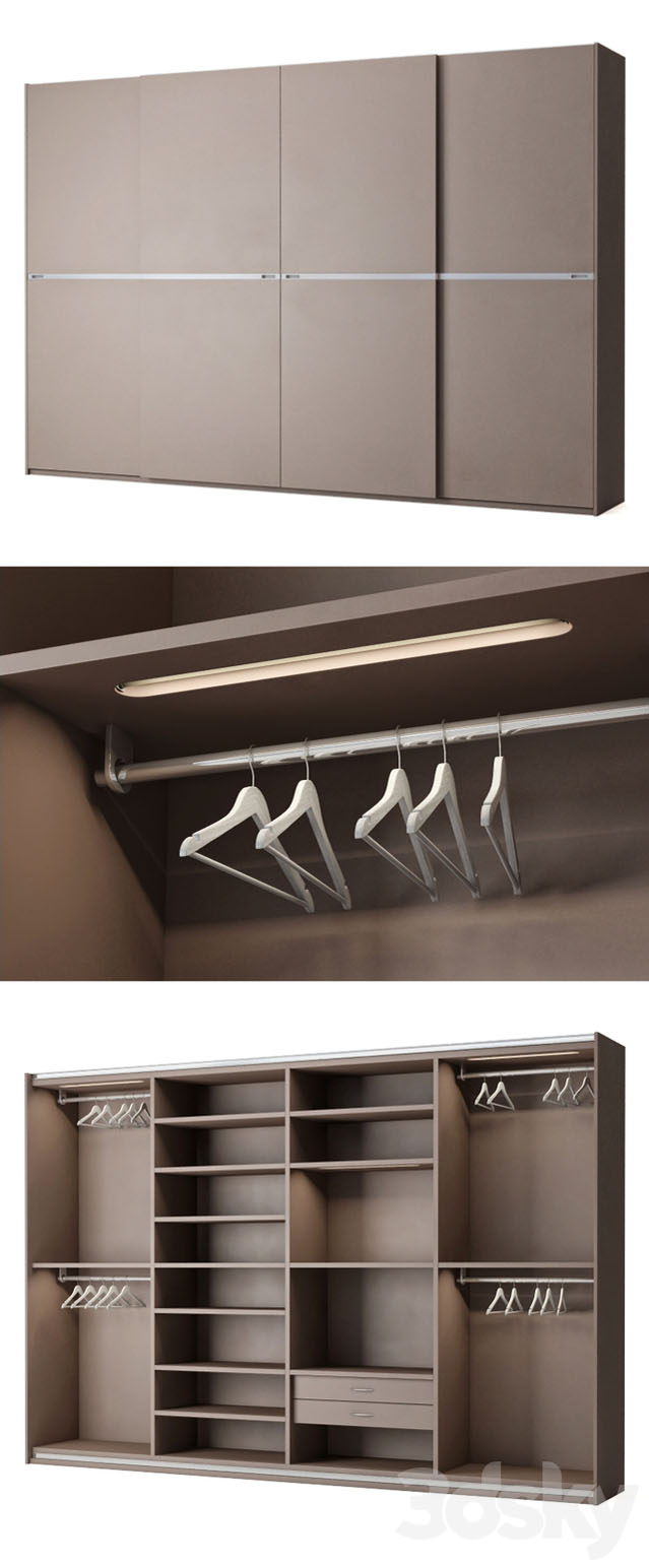 衣柜公司 Poliform Bangkok Modification 带有 4 个推拉门。 室内灯可帮助您在清醒时看到穿什么)