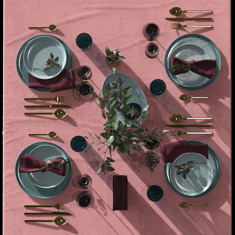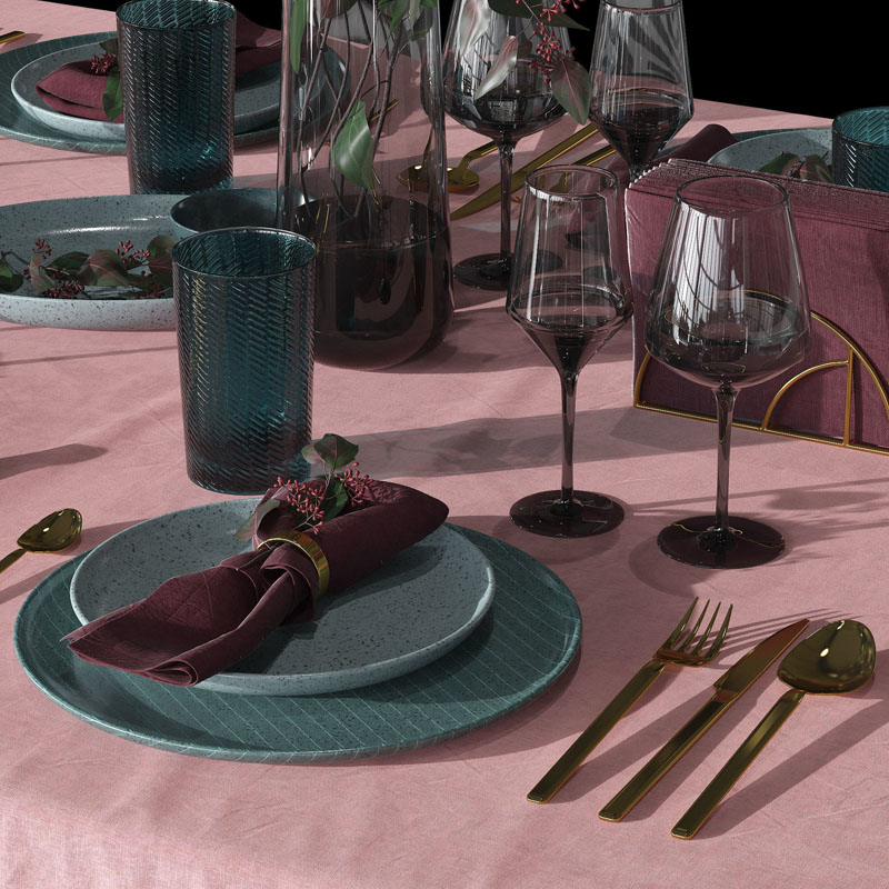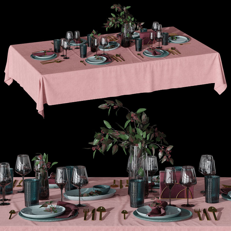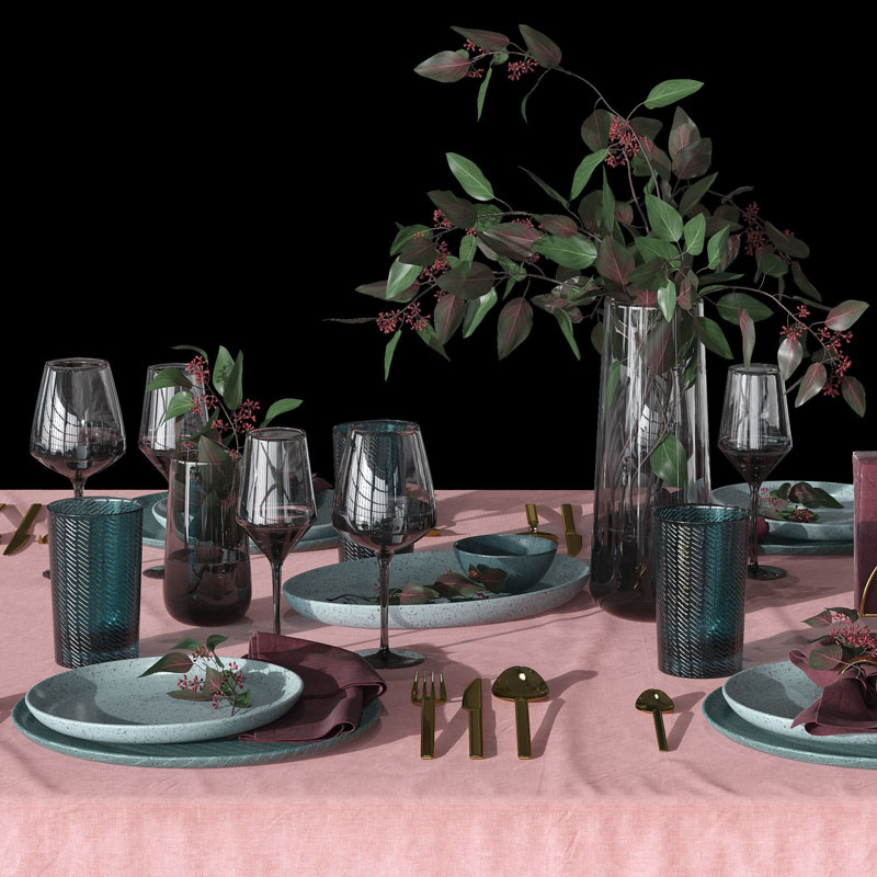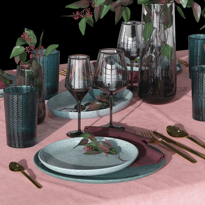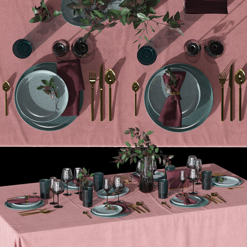 餐桌餐具和餐桌上的装饰品素材之家精选3D模型