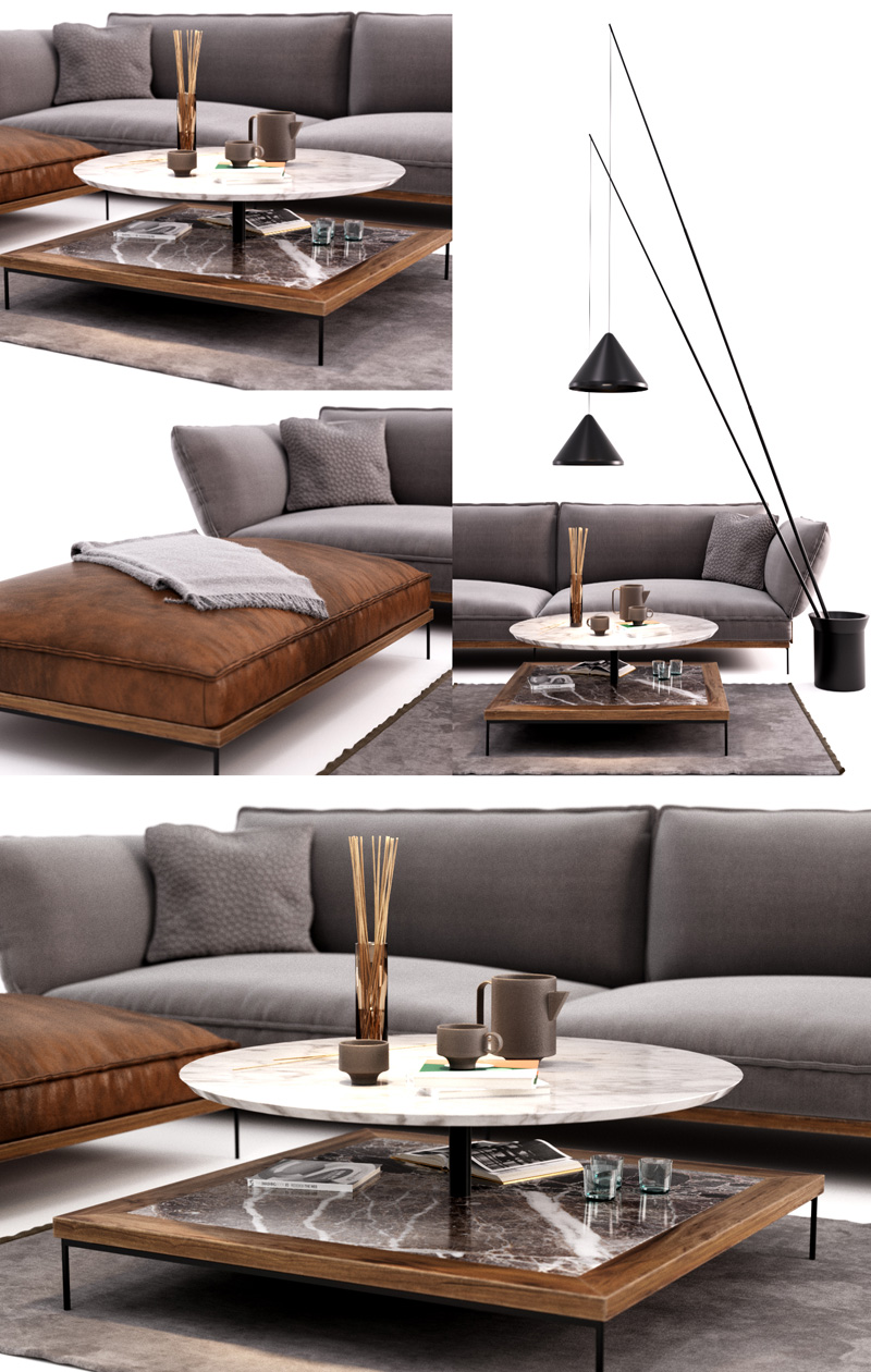 Fogia双人沙发和Vibia落地灯茶几素材之家精选3D模型