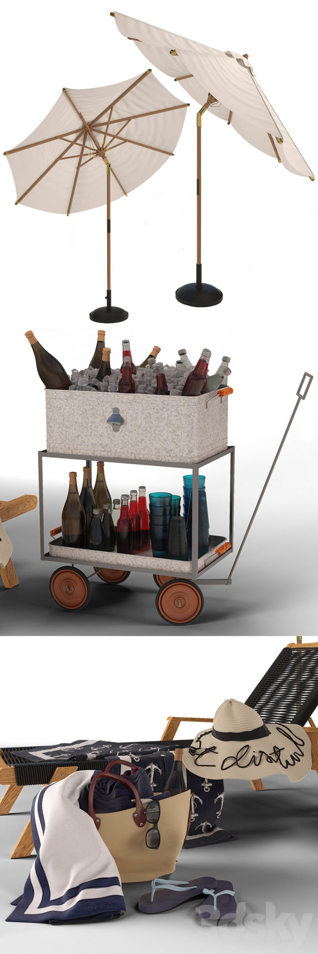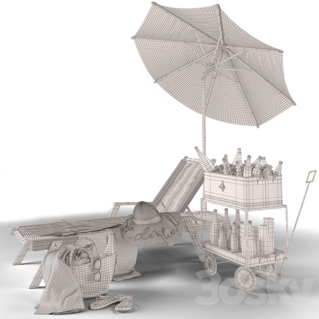 海滩渡假躺椅沙滩椅和酒水遮阳伞素材之家精选3D模型