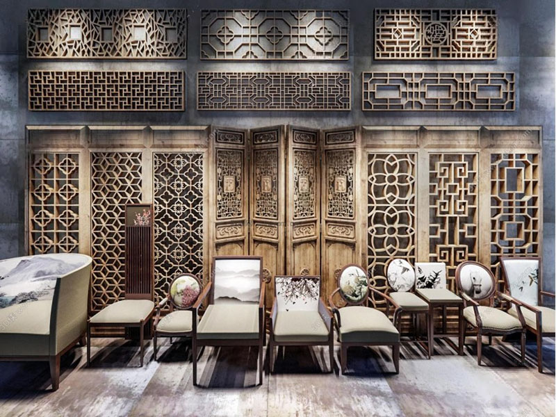 中式复古单椅实木雕花屏风隔断组合素材之家精选3D模型