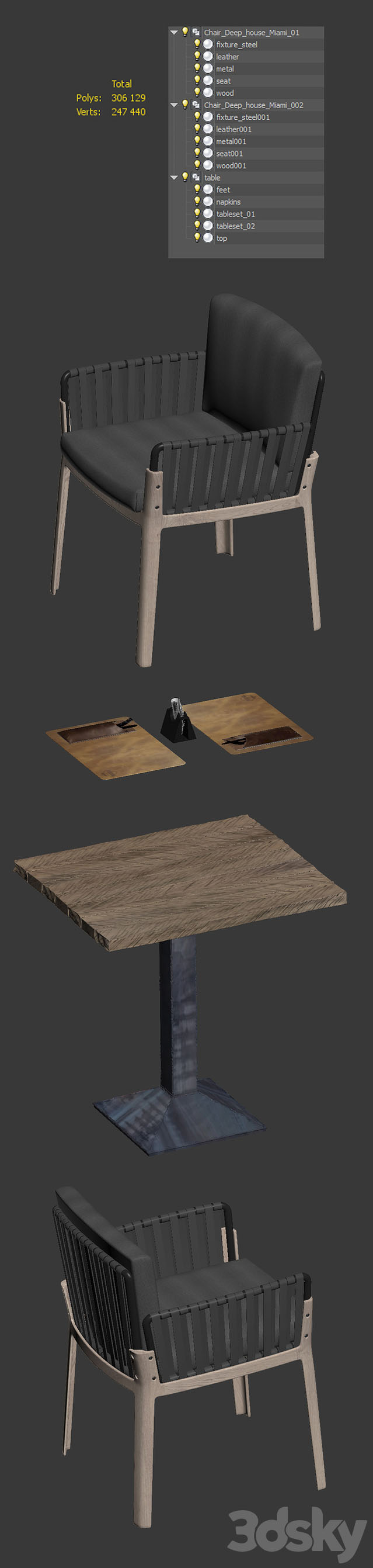 今天素材之家给大家分享的这款3D模型资源名称为:扶手餐桌和户外方形餐椅3D模型,内容与餐桌3D,椅子3D,餐椅3D,3DMAX,3D模型,MAX,OBJ,FBX相关,文件大小为24.9 MB,模型文件格式为MAX OBJ FBX。