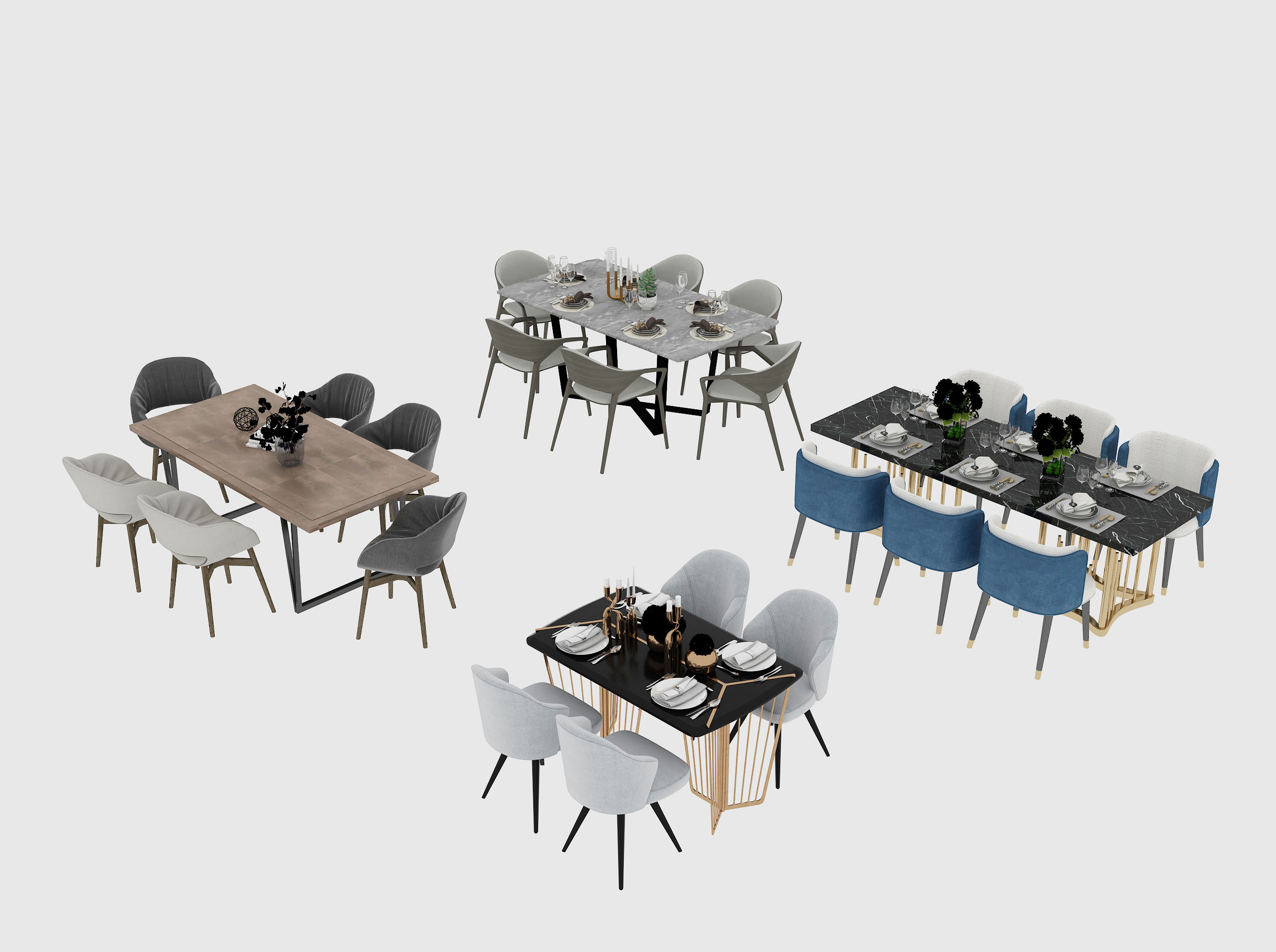 北欧大理石台面餐桌和餐椅素材之家精选3D模型