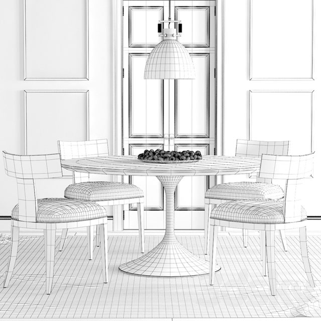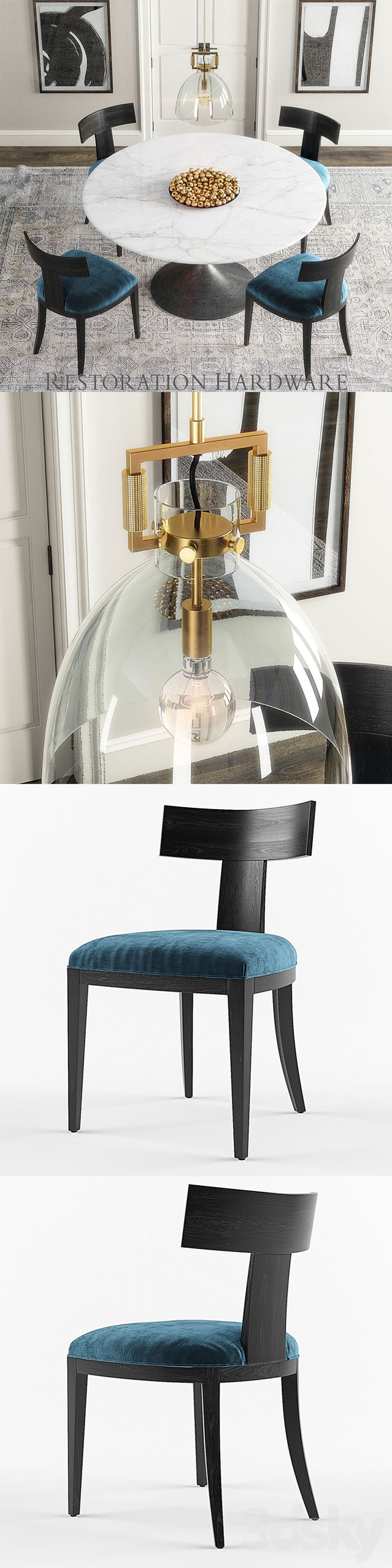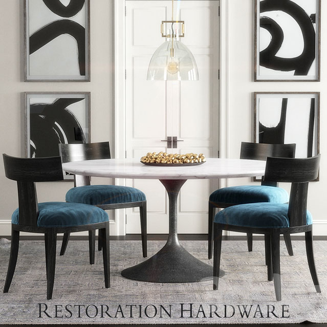 RH圆形大理石餐桌和餐椅素材之家精选3D模型