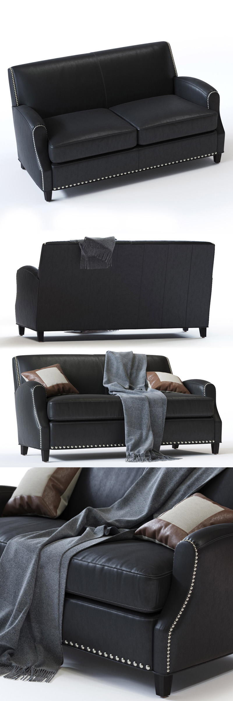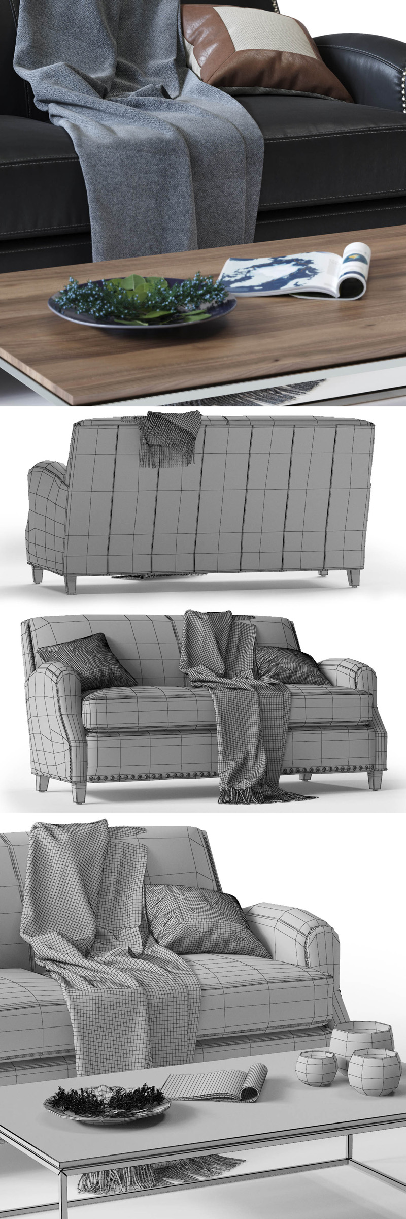 皮质双人沙发和茶几茶杯组合素材之家精选3D模型