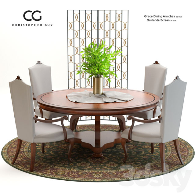 Christopher Guy Grace餐桌椅和Guirlande屏风//详细的高质量建模,非常适合特写和建筑可视化。