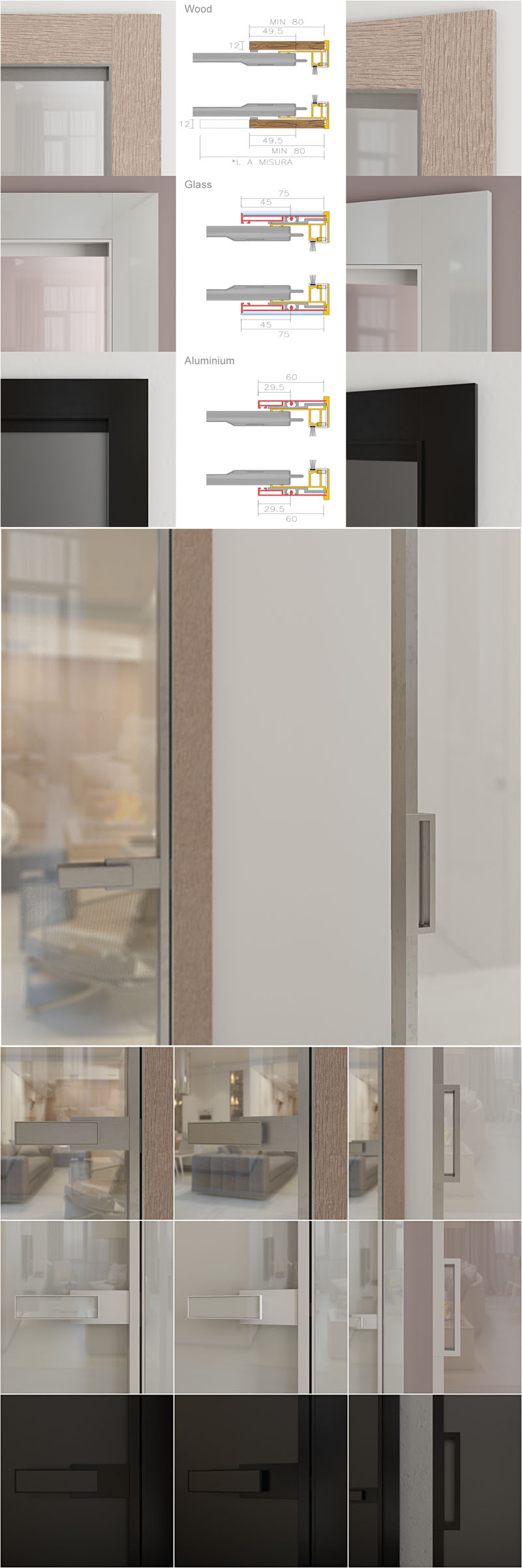 表面处理:铝阳极氧化或染色,玻璃透明或染色,木材