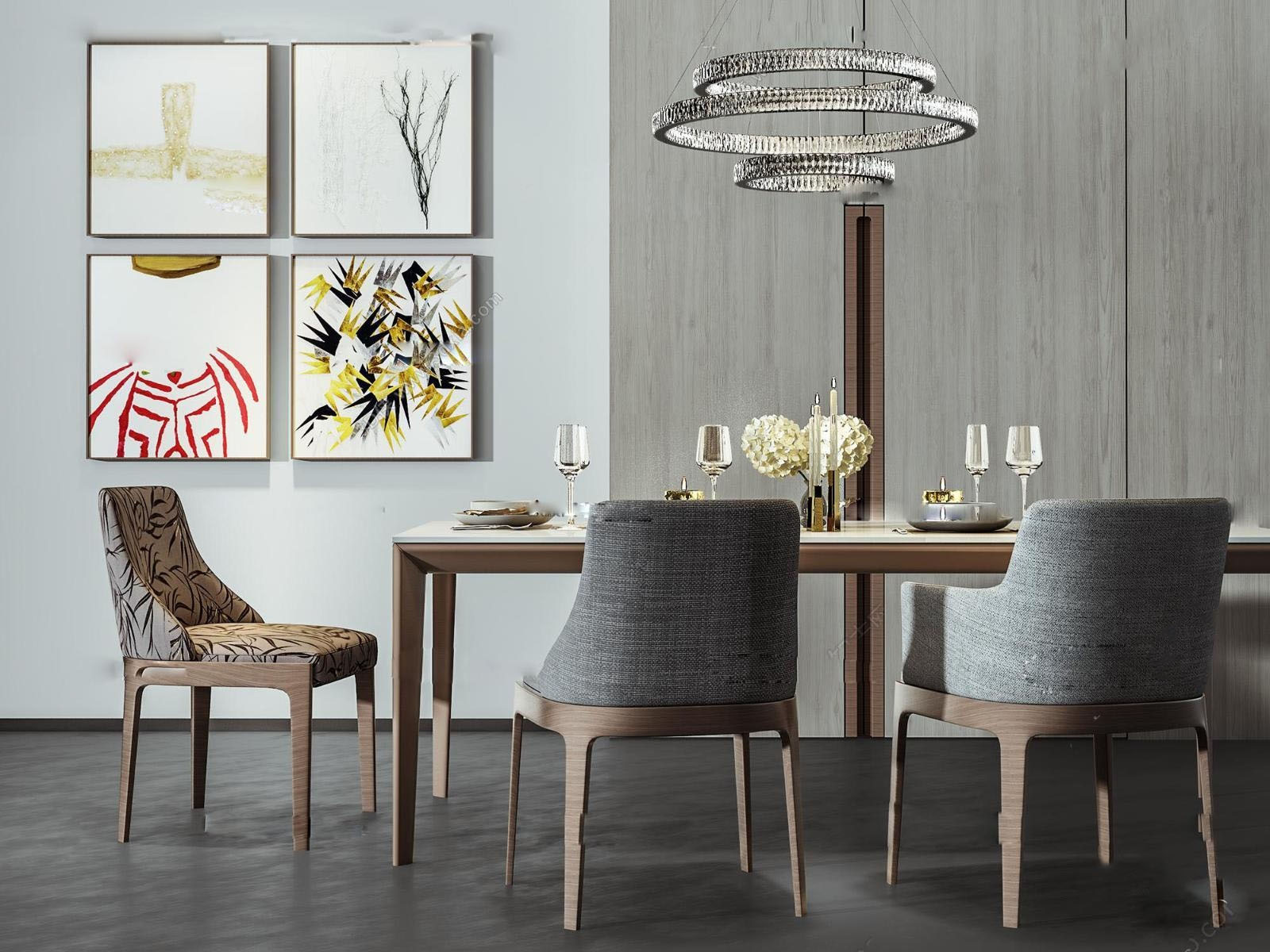 现代餐桌椅装饰画组合素材之家精选3D模型