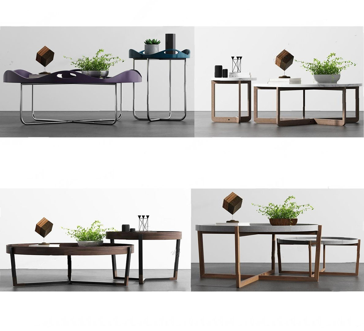 现代创意边几圆形茶几和植物装饰素材之家精选3D模型
