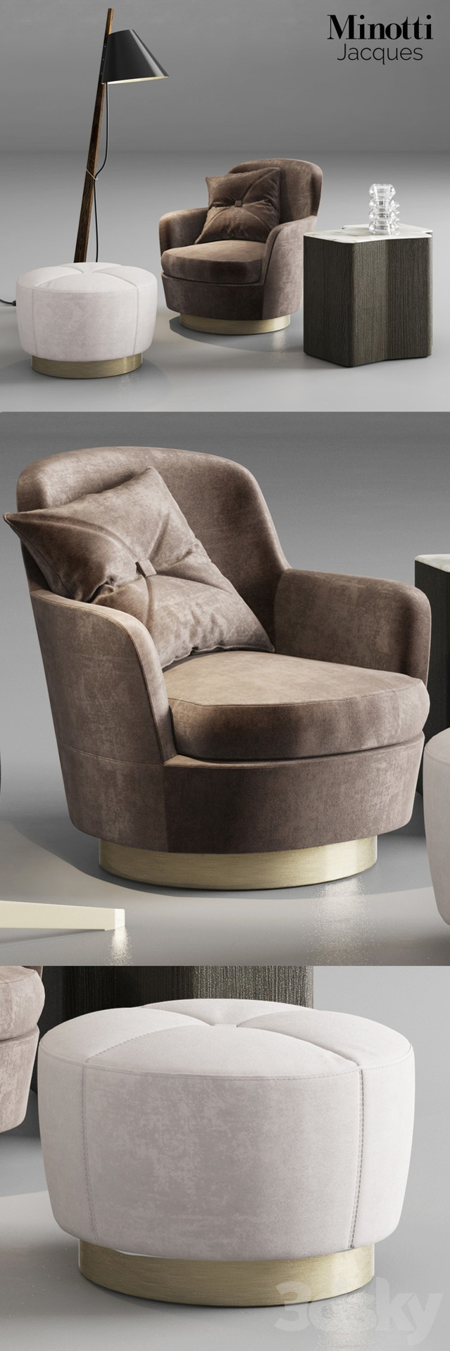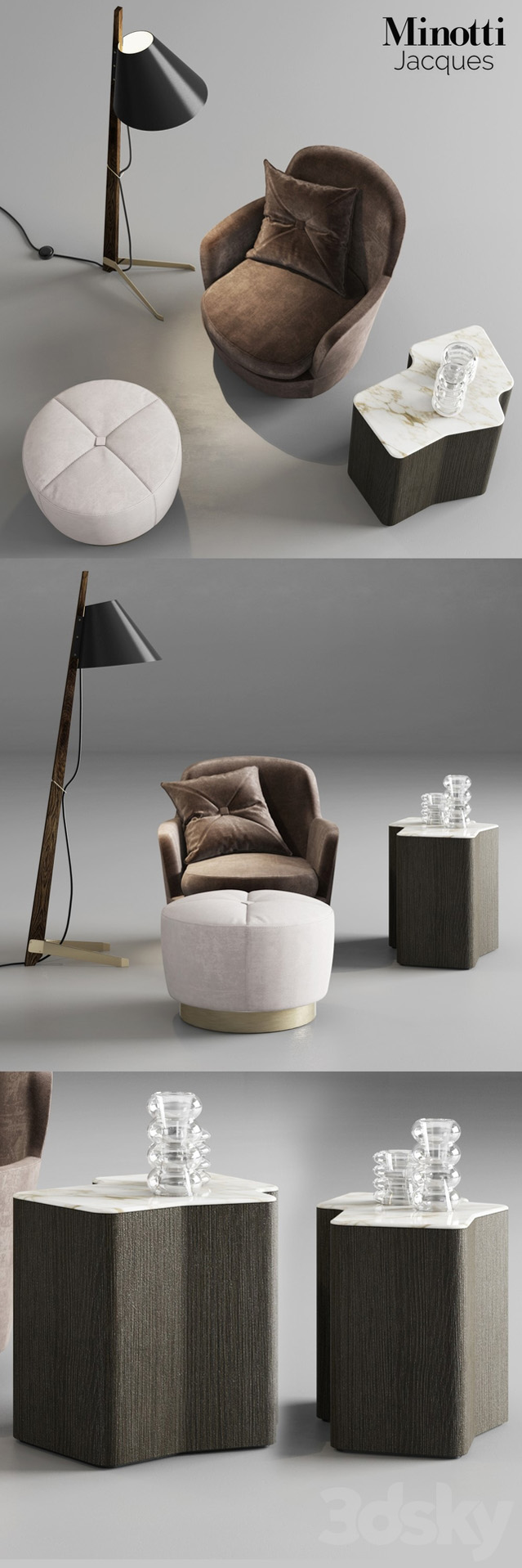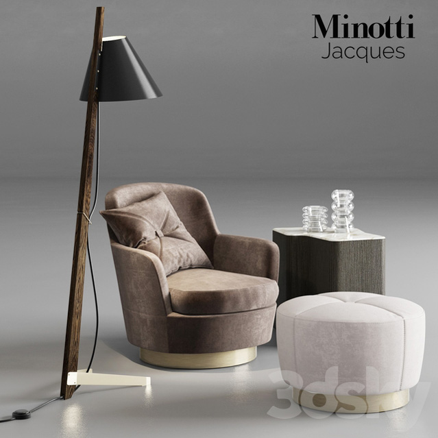 1,Jacques扶手椅,_ 2,Jacques Pouf,_ 3,Lou咖啡桌,_ 3,Kalmar Billy BL落地灯,_ Rodolfo Dordoni设计,-Christophe Delcourt设计,_ JT Kalmar GmbH