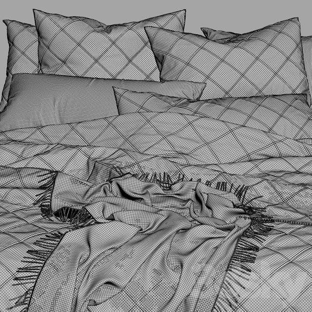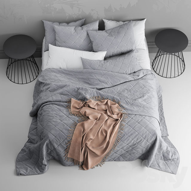 欧式双人床和枕头毛毯等床上用品素材之家精选3D模型