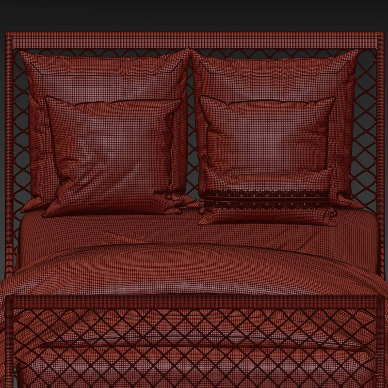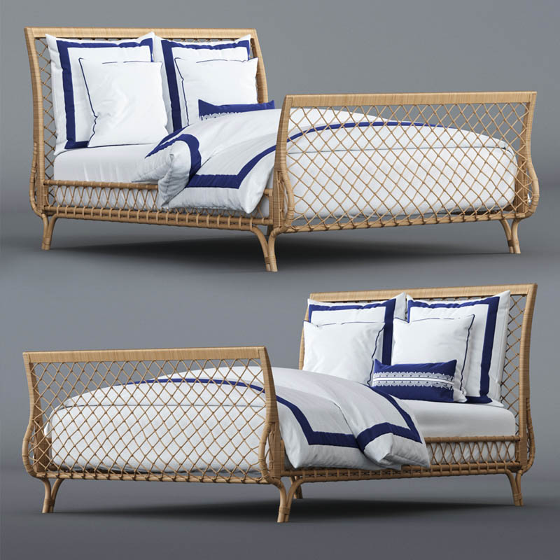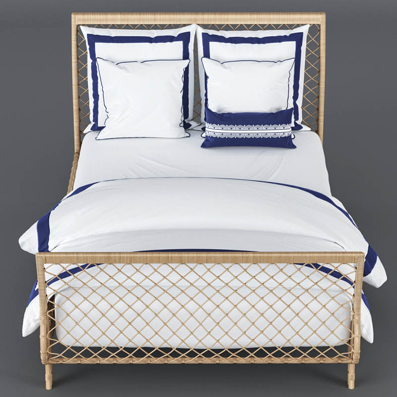 藤编双人床和床上用品素材之家精选3D模型