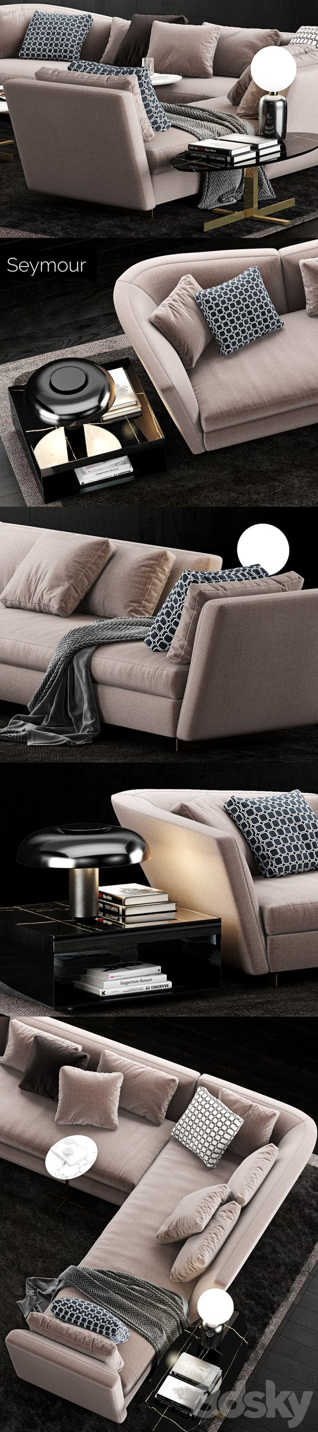 1,Minotti Seymour沙发2,Minotti Elliott咖啡桌3,Minotti Catlin咖啡桌4,Lumenform Circa台灯5,Minotti Joy“