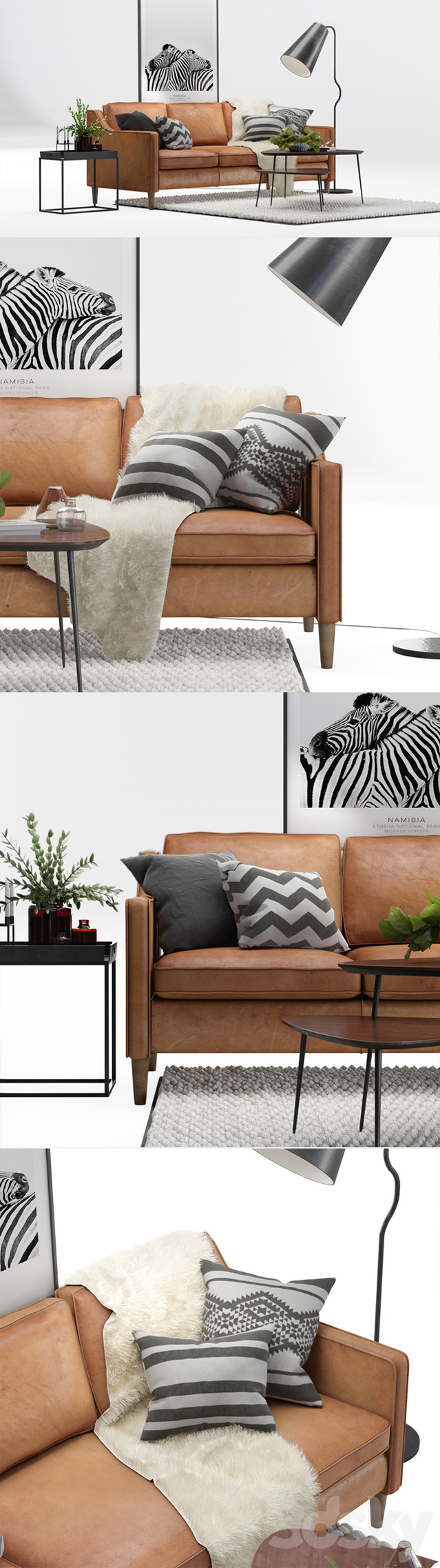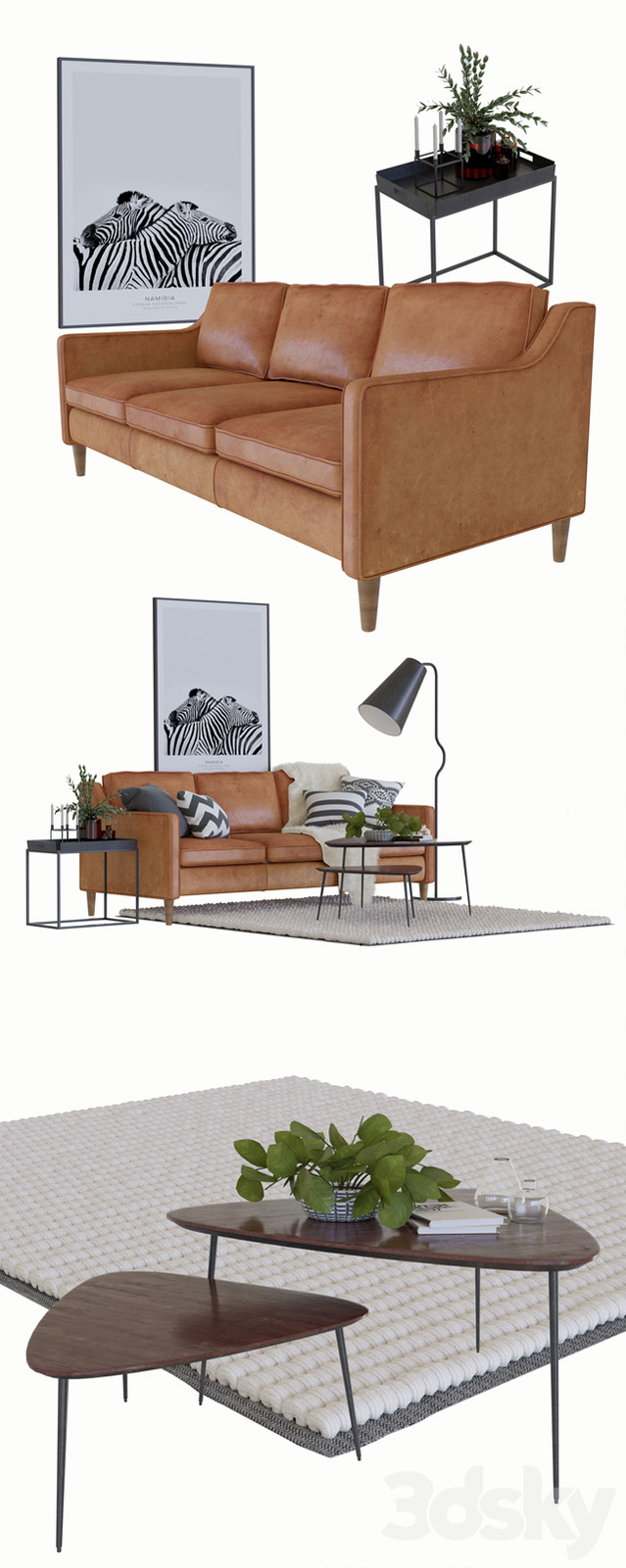 3人座真皮沙发和茶几等套件素材之家精选3D模型