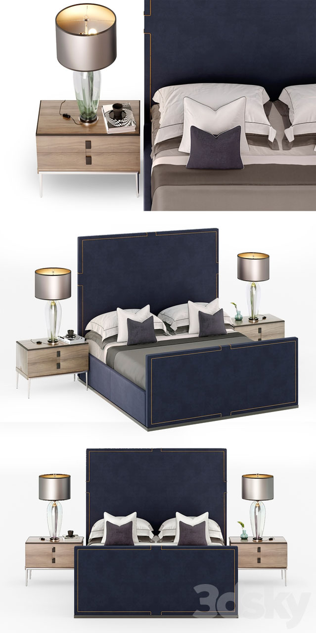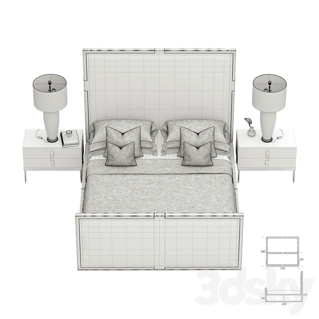 欧式双人床和豪华床头柜台灯组合素材之家精选3D模型