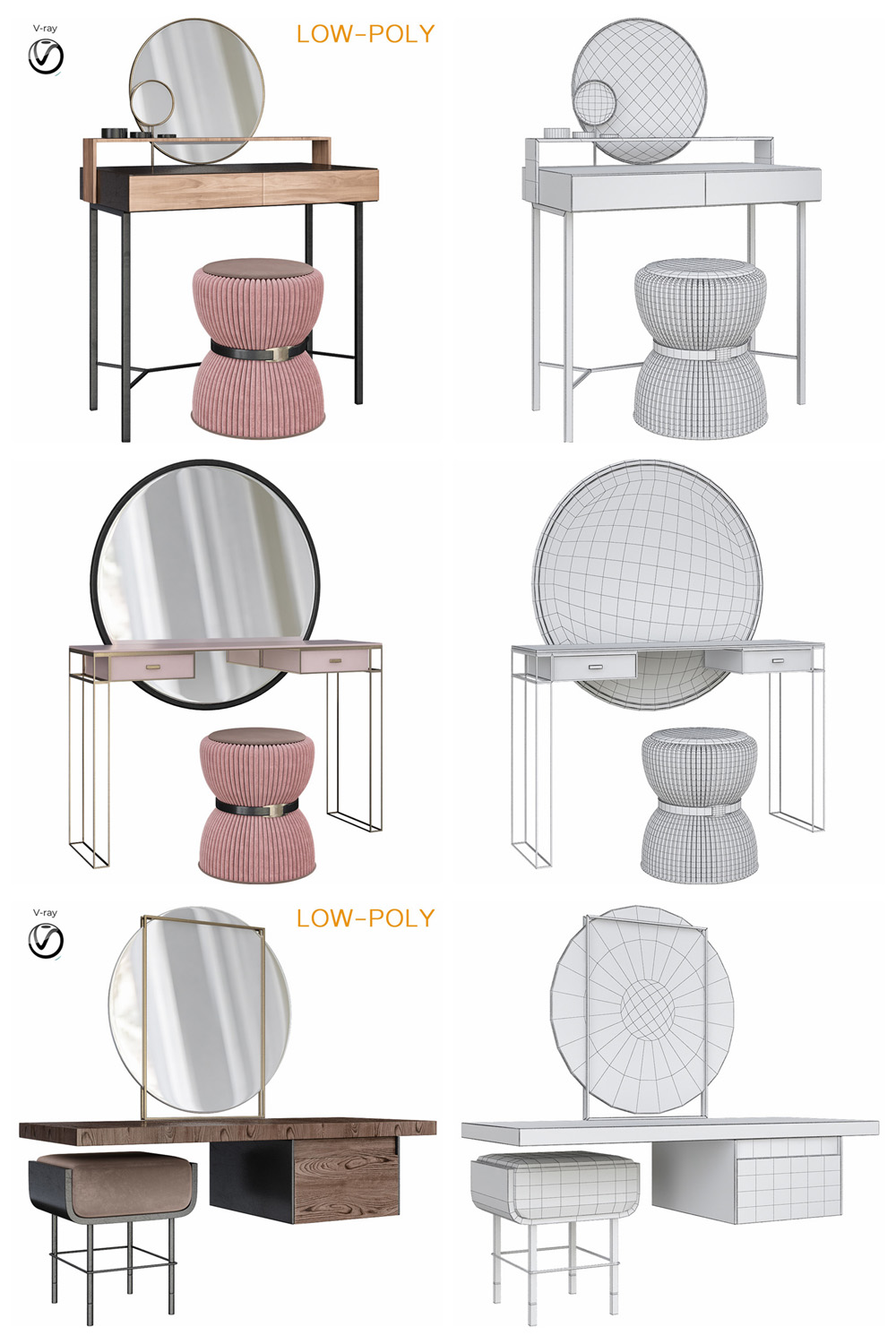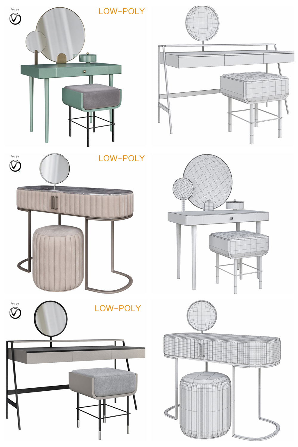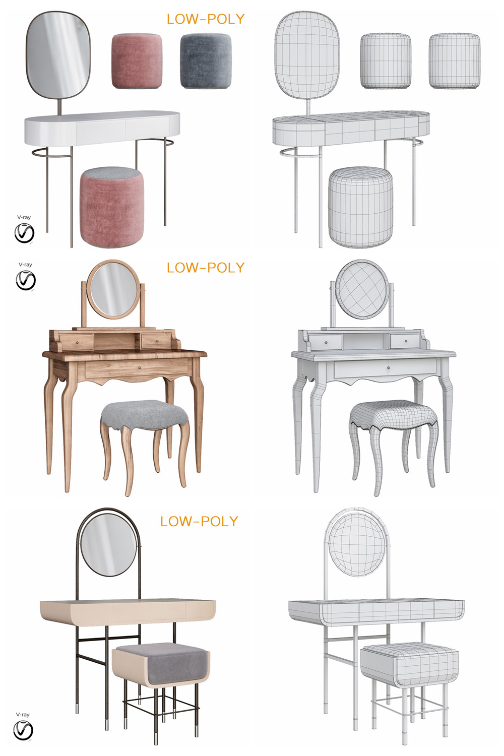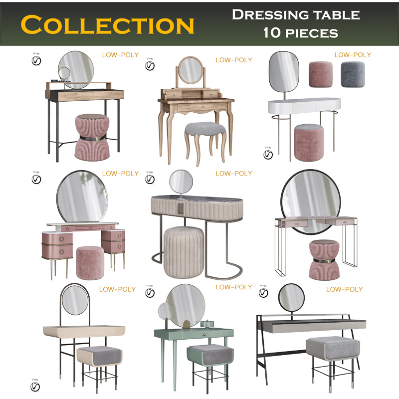 梳妆台3d模型低多边形集合:感谢您选择此模型!