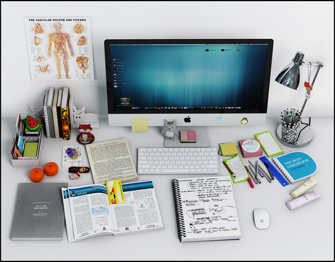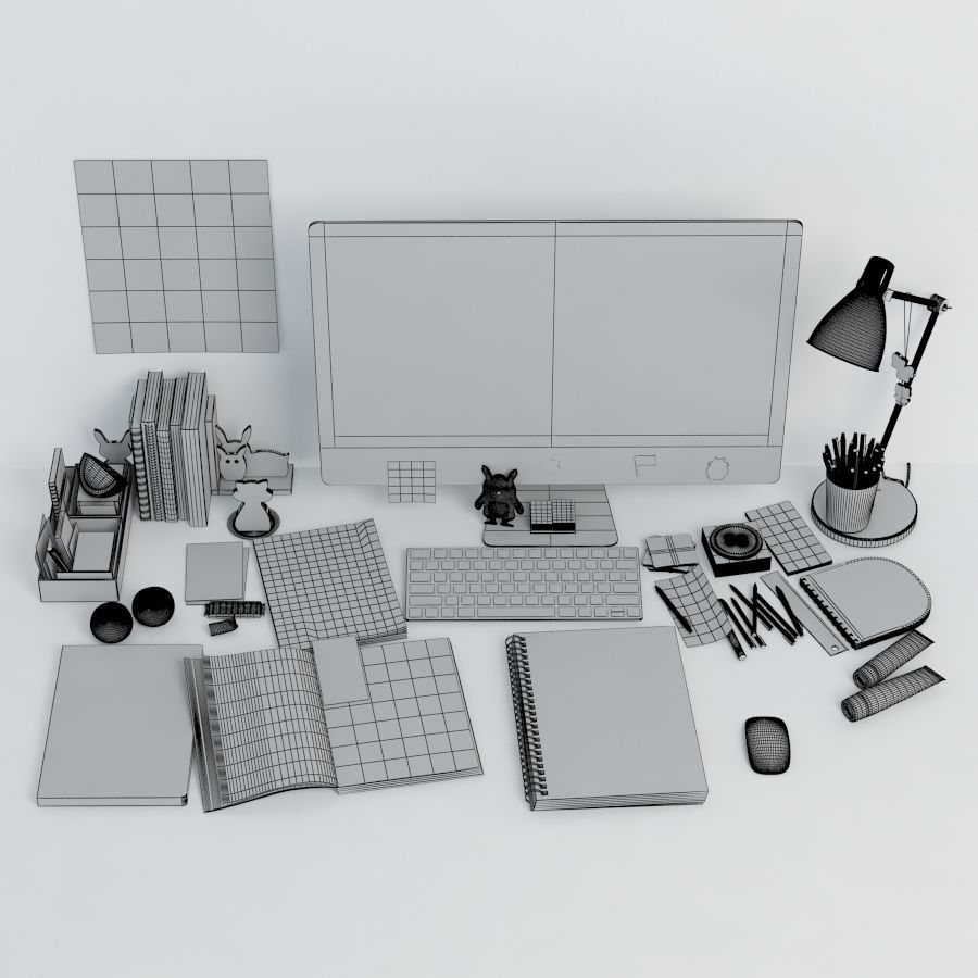 办公桌上的办公用品和苹果电脑素材之家精选3D模型