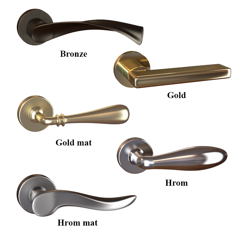 12个门把手 (5种颜色)。 闩锁内部和外部。 铰链。 存档库CoronaRenderer的材料是V射线。