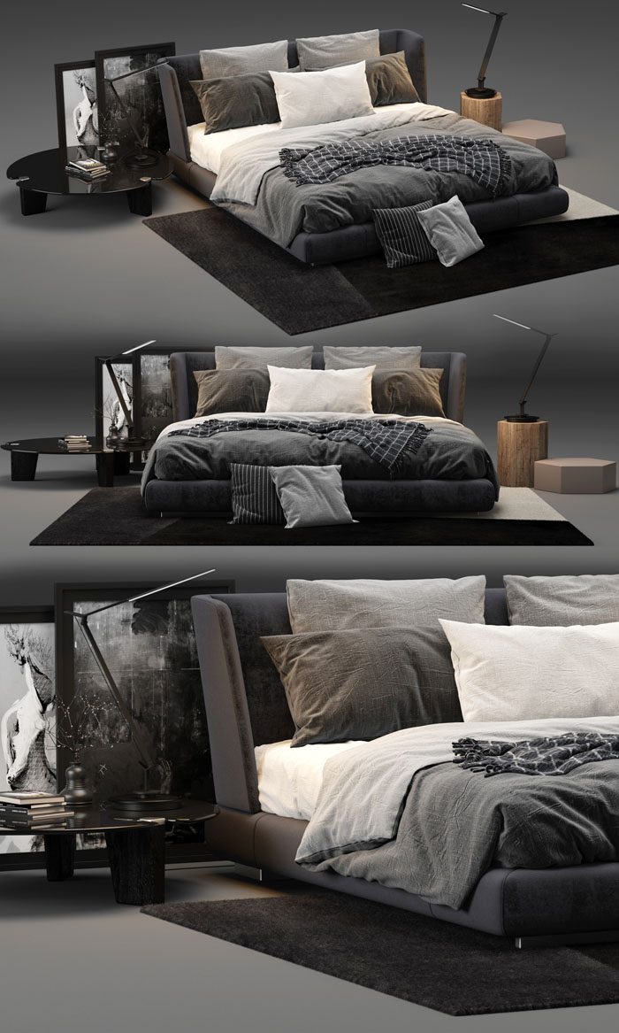 欧式双人床和床上用品素材之家精选3D模型