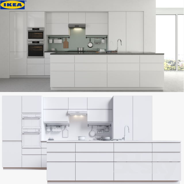 Ikea Kitchen VOXTORP and AEG appliances, BOSCH and IKEA. New made in 3 colors, next to the kitchen with the three spheres of moods materials. The very customized kitchen with ID, ie the appointment of a particular material, no problems. IMPORTANT: In the preview of 3 can be seen, the contents of the scene and the quality of the grid. All kitchen 900,000 polygons. Path textures removed, the model tested for the presence of errors in the scene. Exhibited in the zero position. Textures and materials are also signed. Layers, cameras, light no. Other Ikea kitchens, appliances for kitchens, electronics for life - you can find in my profile. Enjoy your renderings!
