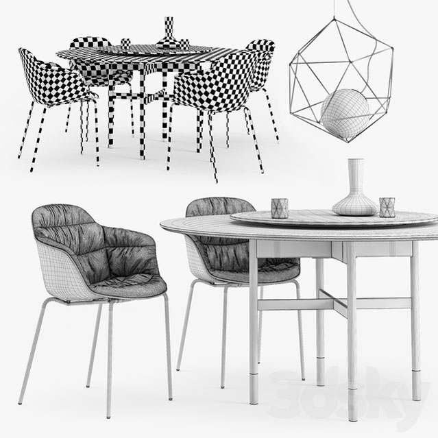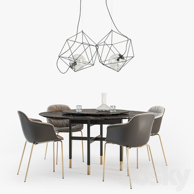 圆形餐桌餐椅和金属吸顶灯素材之家精选3D模型