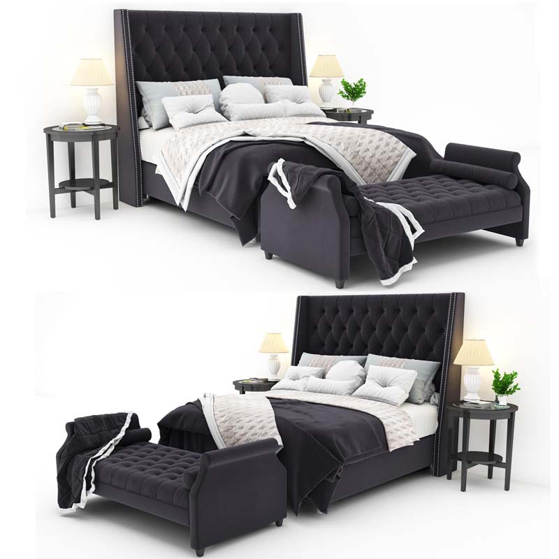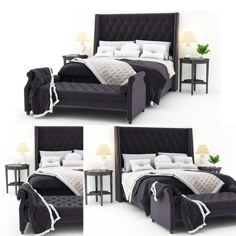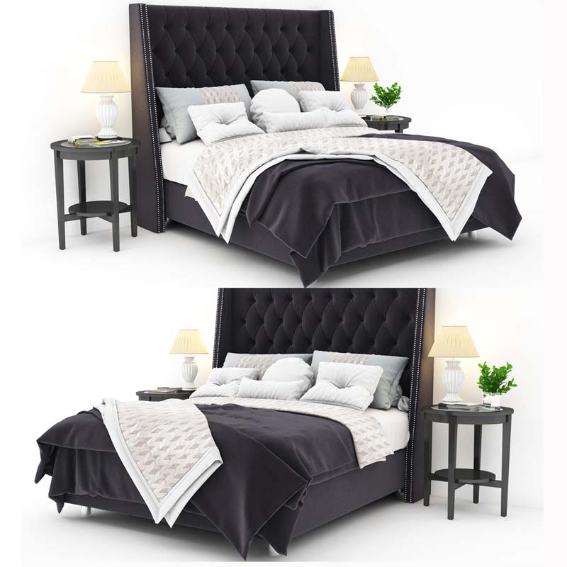 灰色双人床和床上用品3DMAX模型