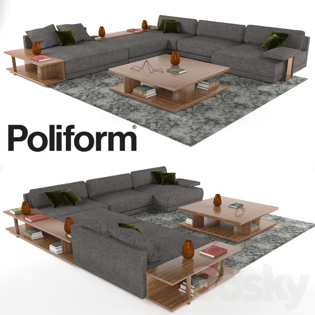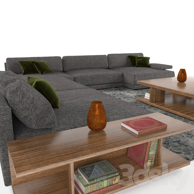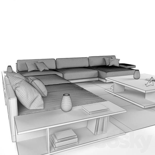 转角沙发和方形木质茶几组合素材之家精选3D模型