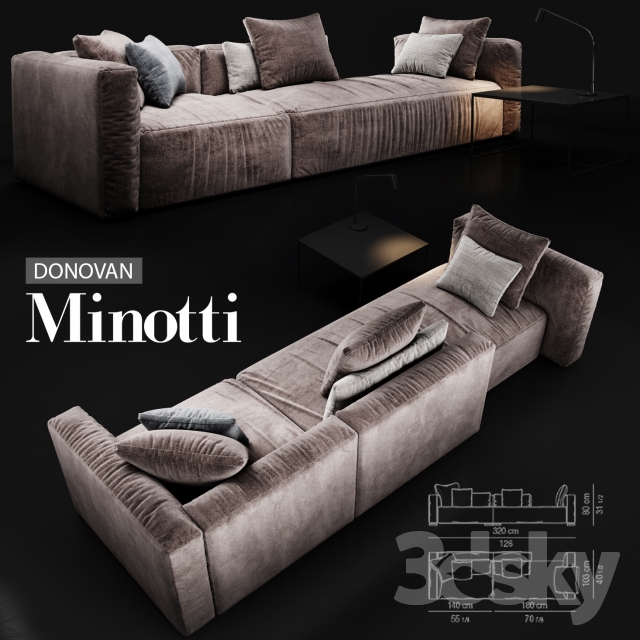 Sofa Minotti DONOVAN专业版,用于建筑可视化的高度详细的3D模型。