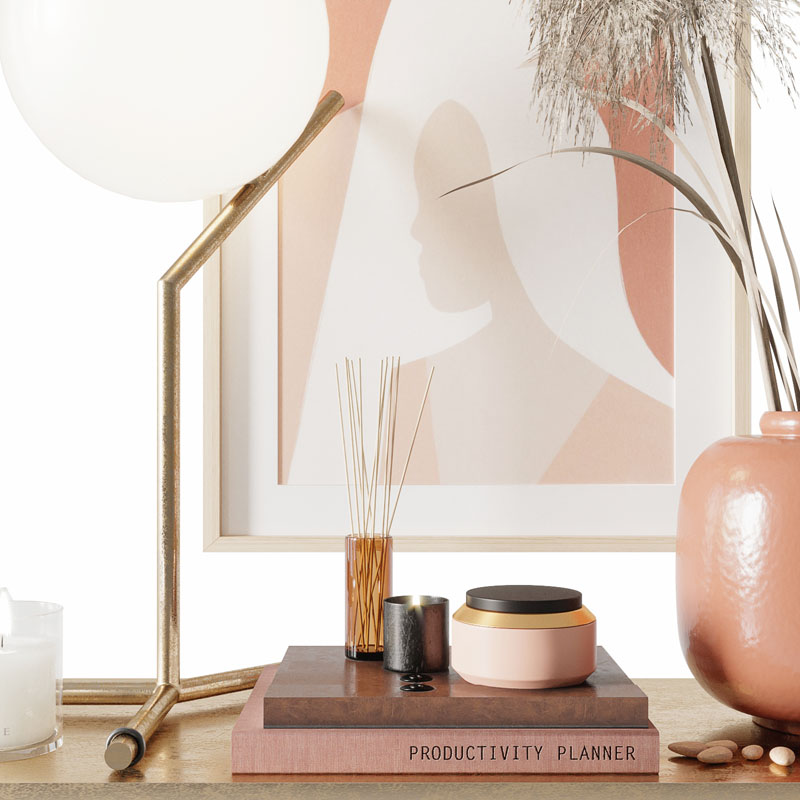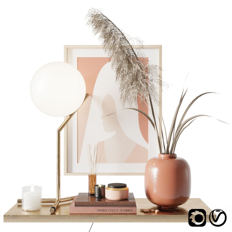 蒲苇草和花屏书籍等装饰套装素材之家精选3D模型