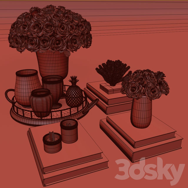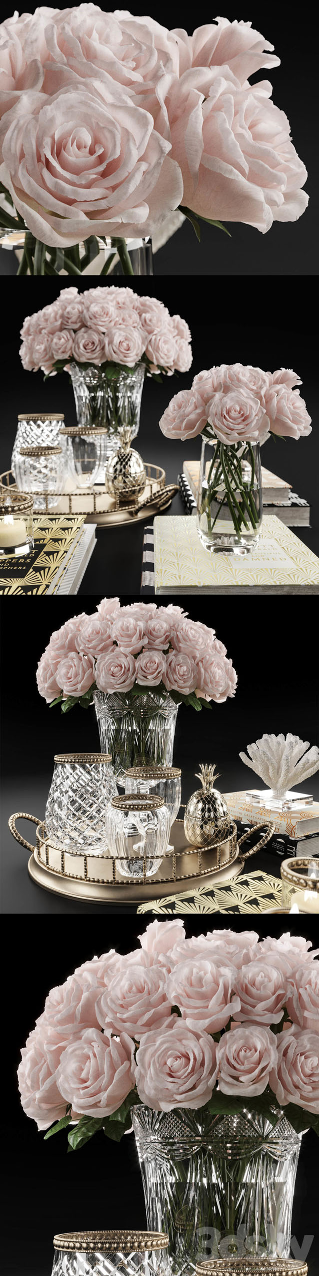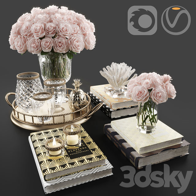 玫瑰花和水晶花瓶书籍装饰品素材之家精选3D模型