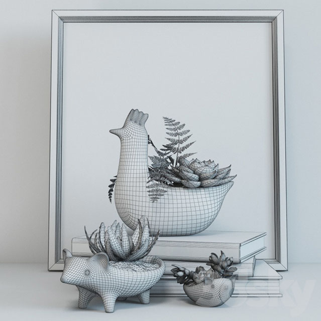 公鸡刺猬形状陶瓷盆栽和装饰画素材之家精选3D模型