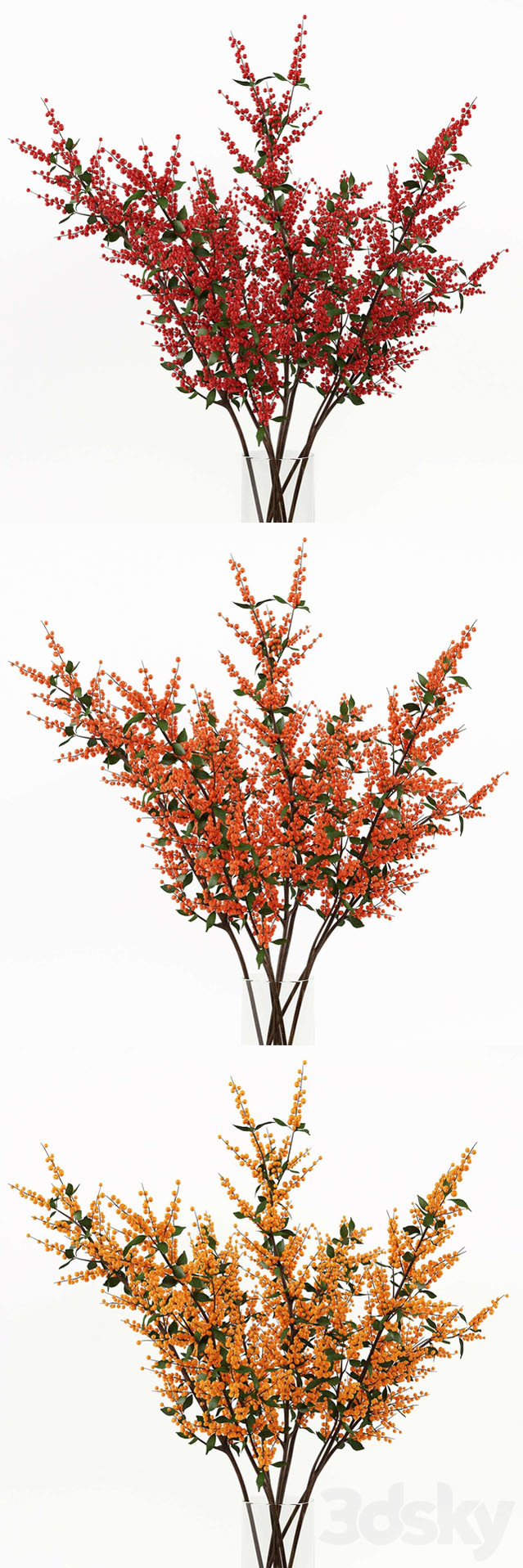 带有浆果的冬青枝条花卉装饰品素材之家精选3D模型