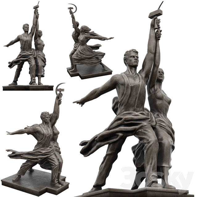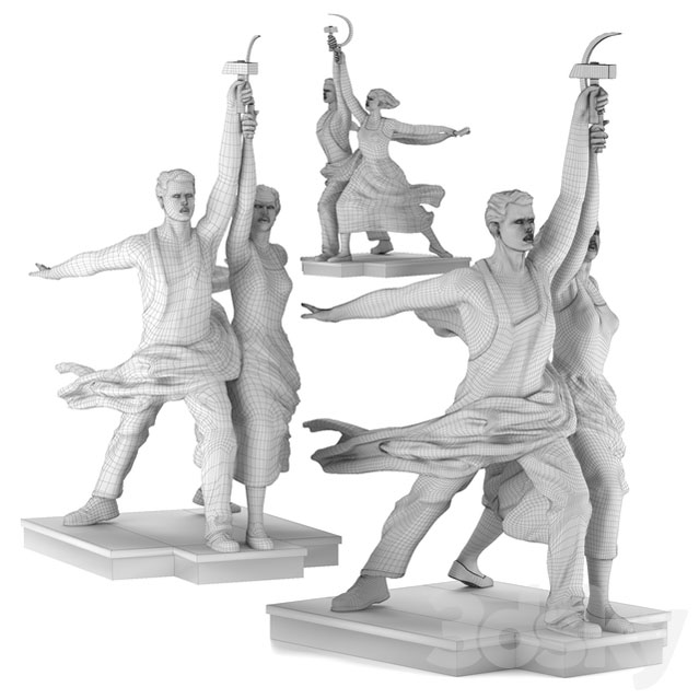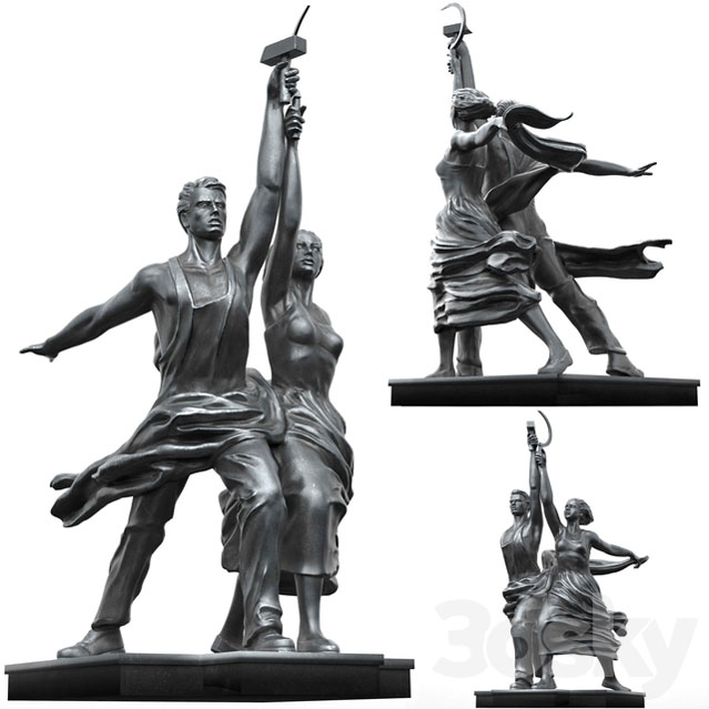 苏联时代工人和农场女郎纪念碑装饰品素材之家精选3D模型