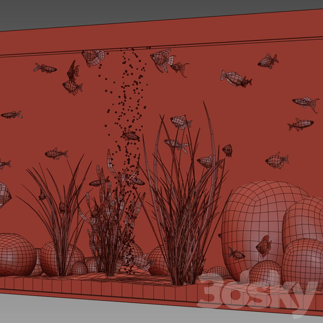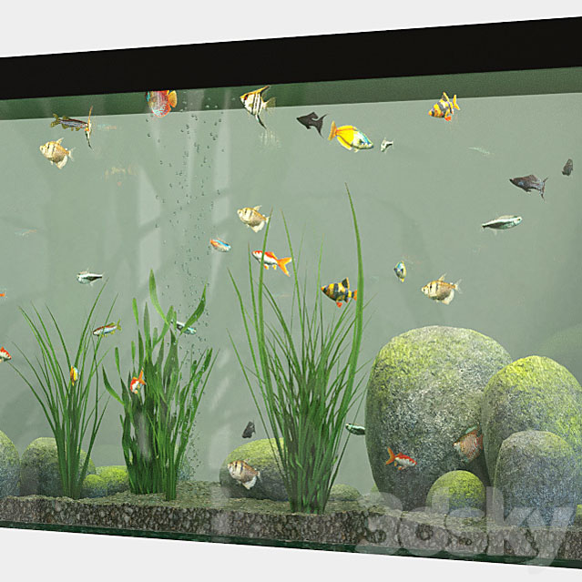 水族馆放有金鱼和水草植物的鱼缸素材之家精选3D模型