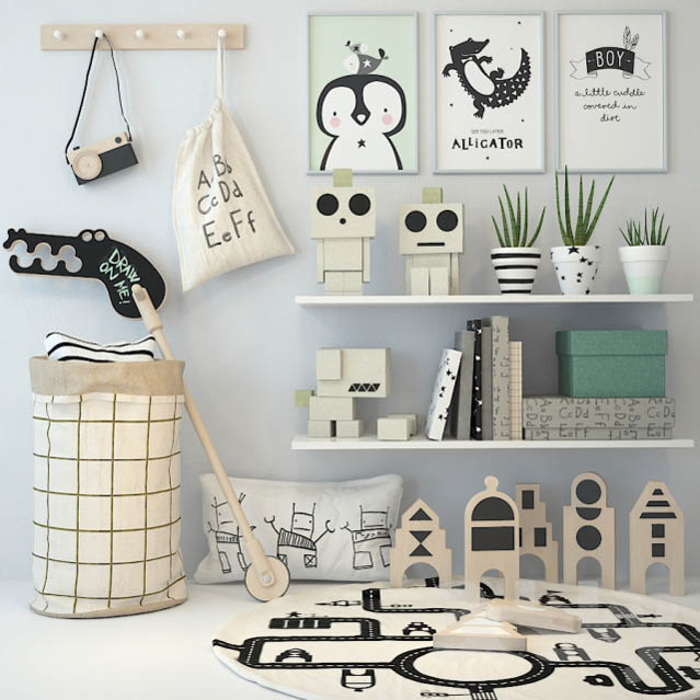 男孩儿童房间装饰玩具和盒子等素材之家精选3D模型