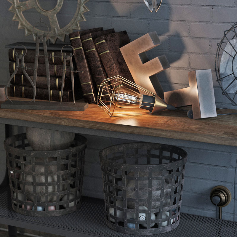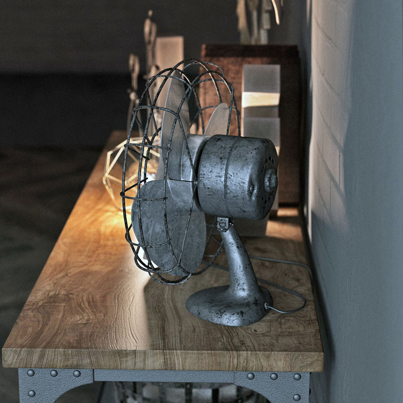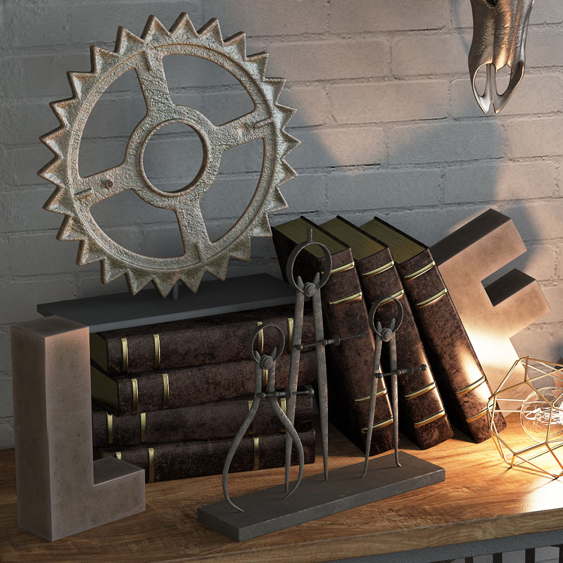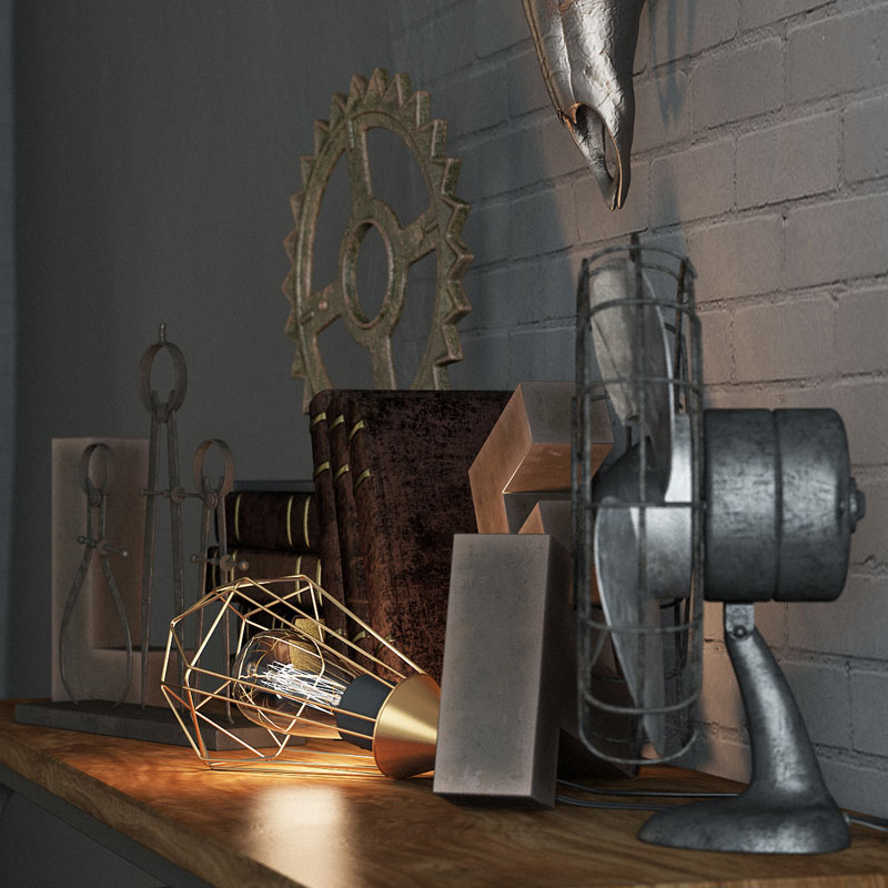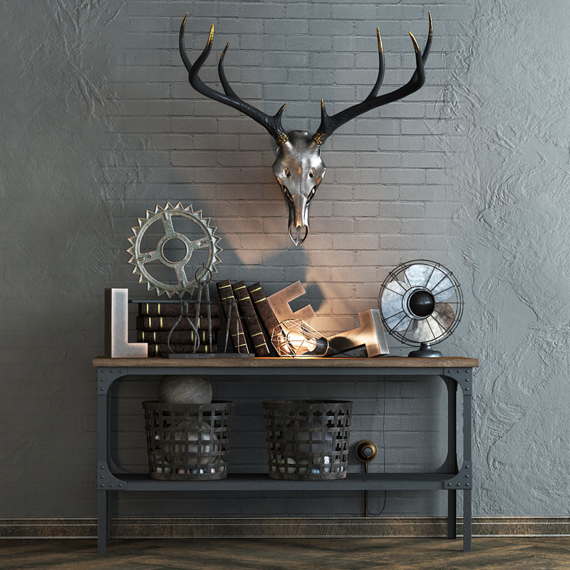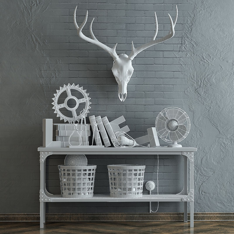 鹿头骨和风扇书籍室内摆件装饰品素材之家精选3D模型