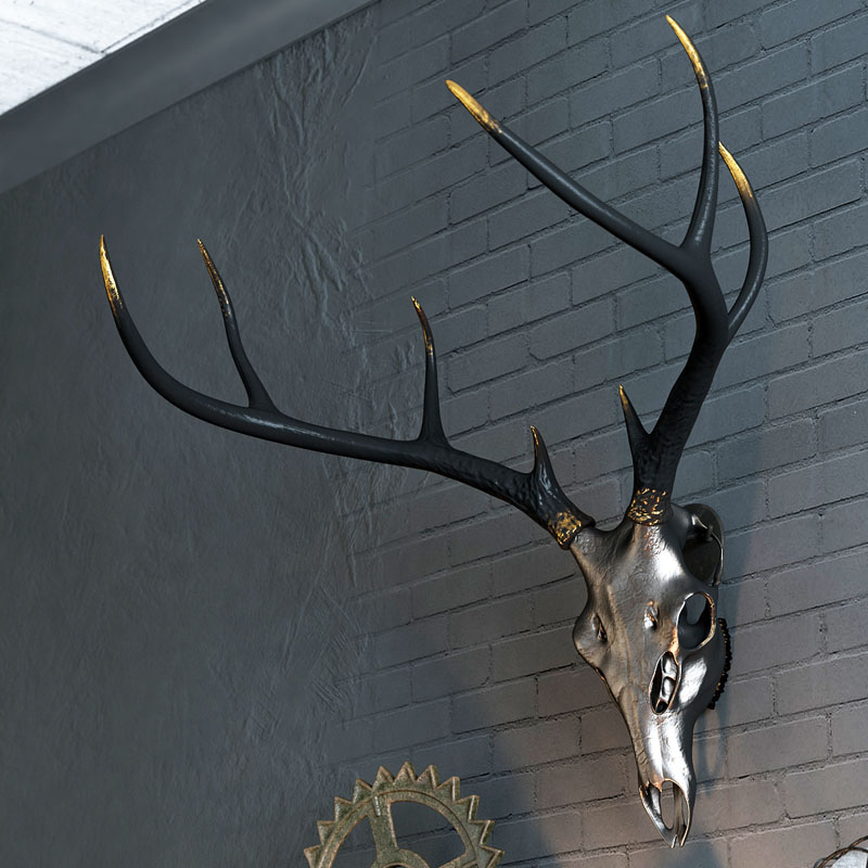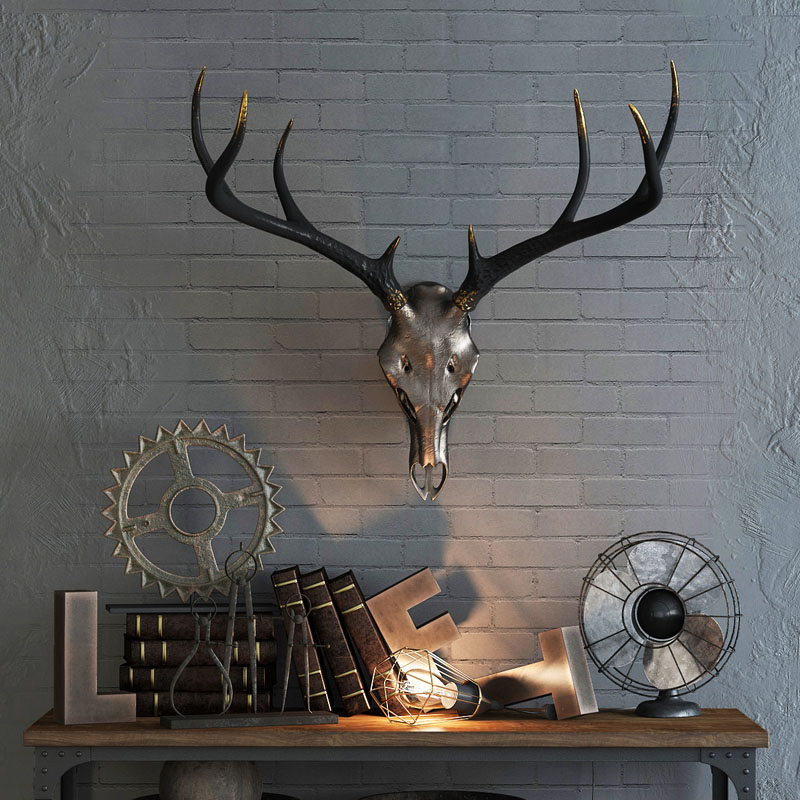阁楼风格鹿头骨的装饰品。