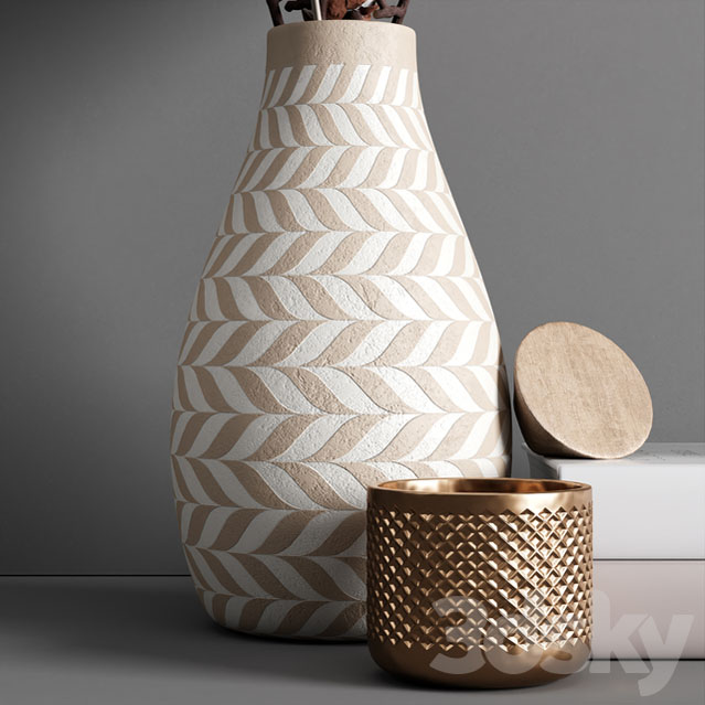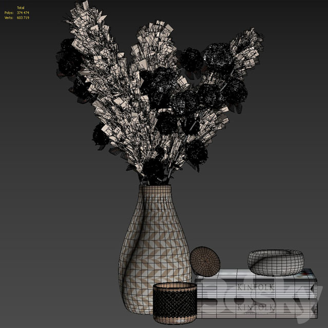 书本和花瓶里的棉花装饰品素材之家精选3D模型