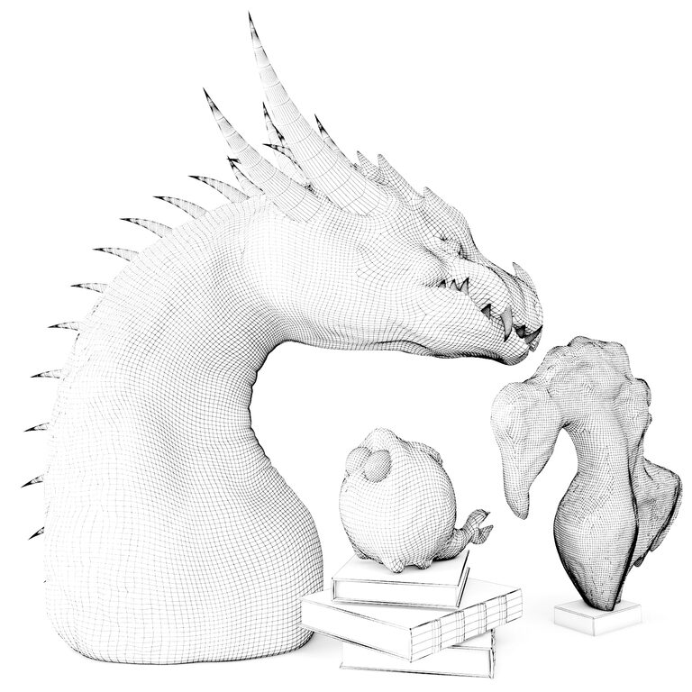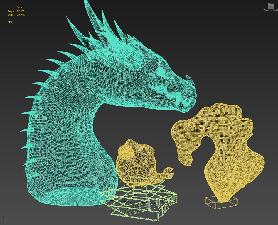龙首和金鱼雕塑室内装饰品素材之家精选3D模型