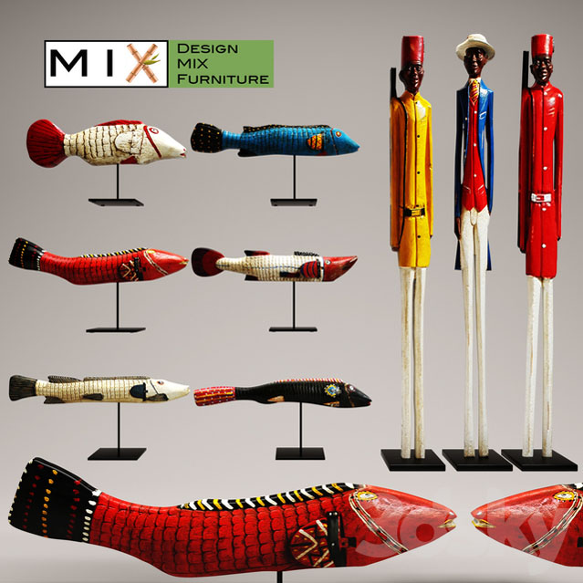 设计混合家具Bozo鱼木偶700 * 400 * 150mm。非洲殖民地人像1900 * 250毫米。