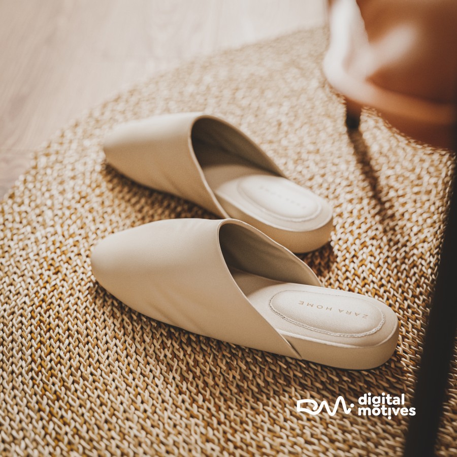 该模型是 ZARA HOME 皮革穆勒拖鞋的精确表示,使用毫米刻度。