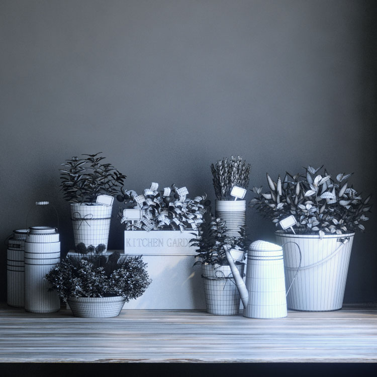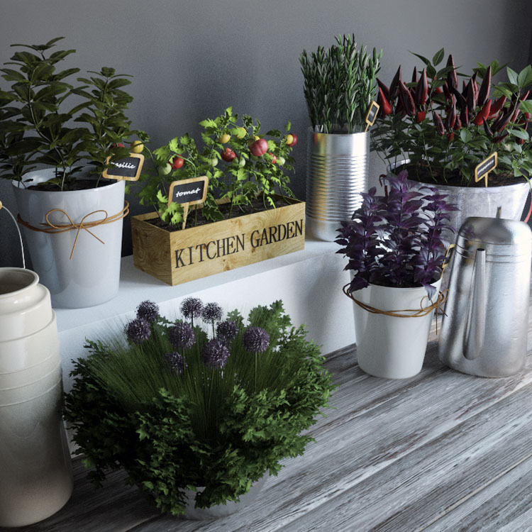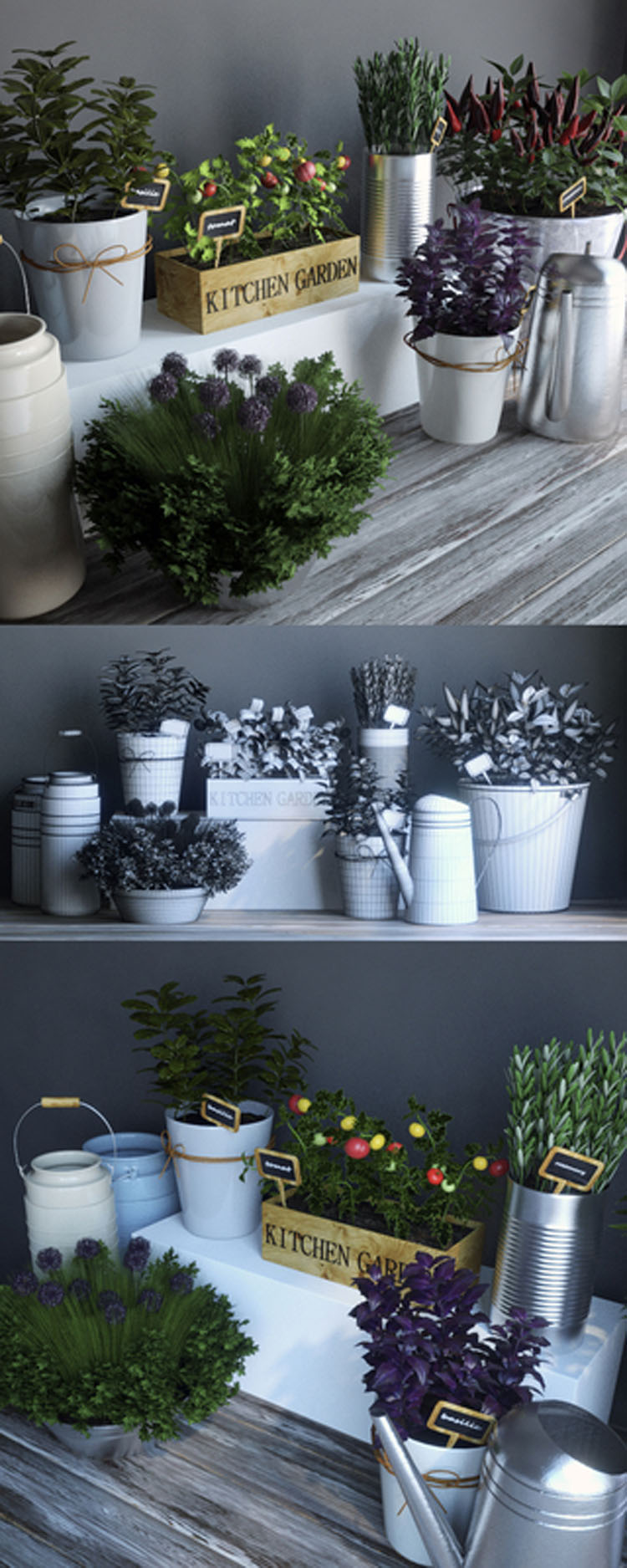 厨房绿色植物花盆花卉装饰品素材之家精选3D模型