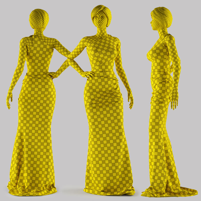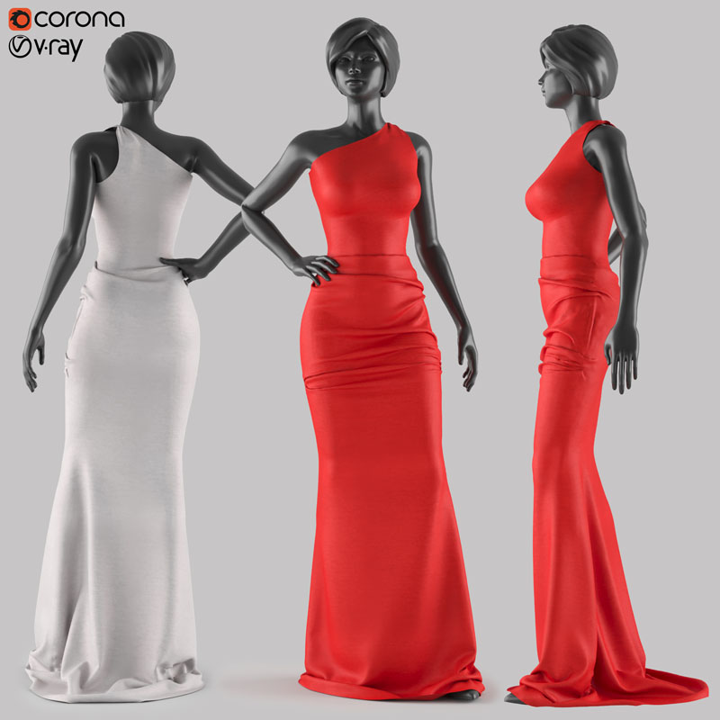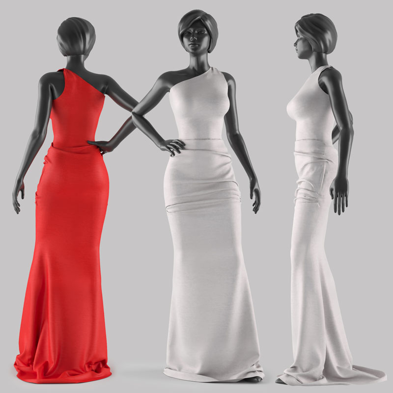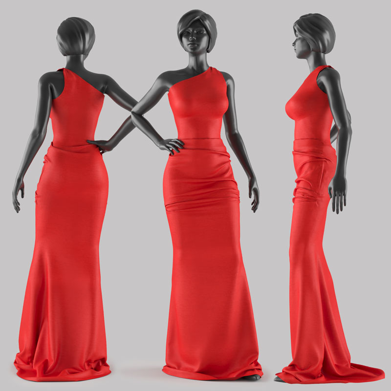 红色连衣裙礼服和黑色女性模特素材之家精选3D模型