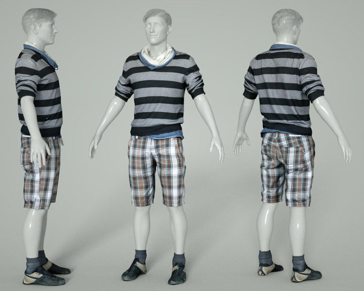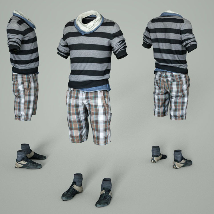 男士休闲短袖和短裤鞋类VR/AR/低多边形素材之家精选3D模型