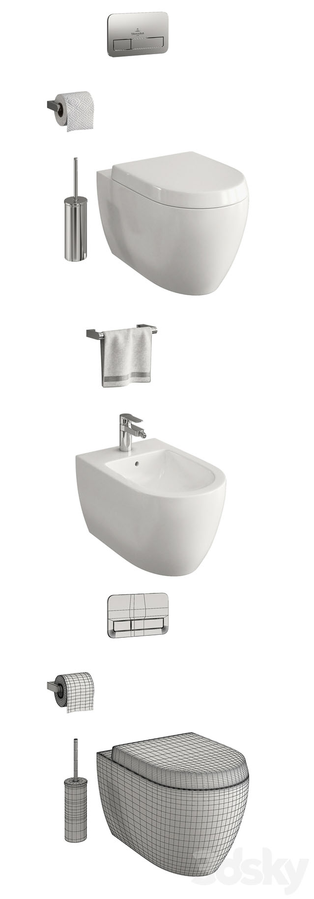 卫生间洗脸池水池马桶毛巾架卫生纸素材之家精选3D模型