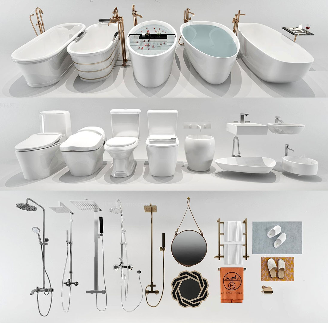 现代卫浴用品浴缸马桶洗脸盆洗浴用品素材之家精选3D模型