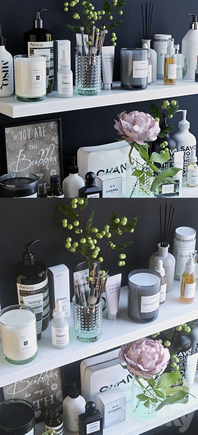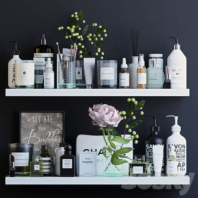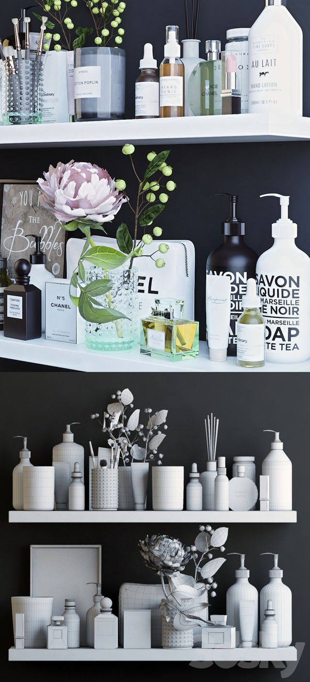 浴室装饰架上的化妆品和洗浴用品素材之家精选3D模型