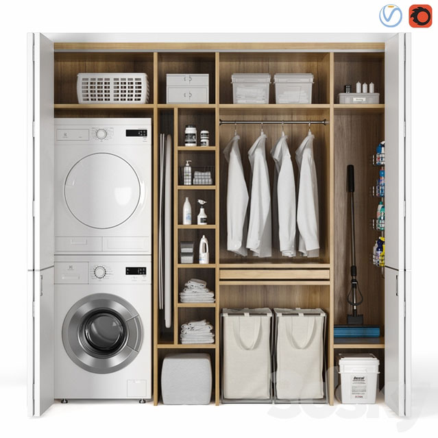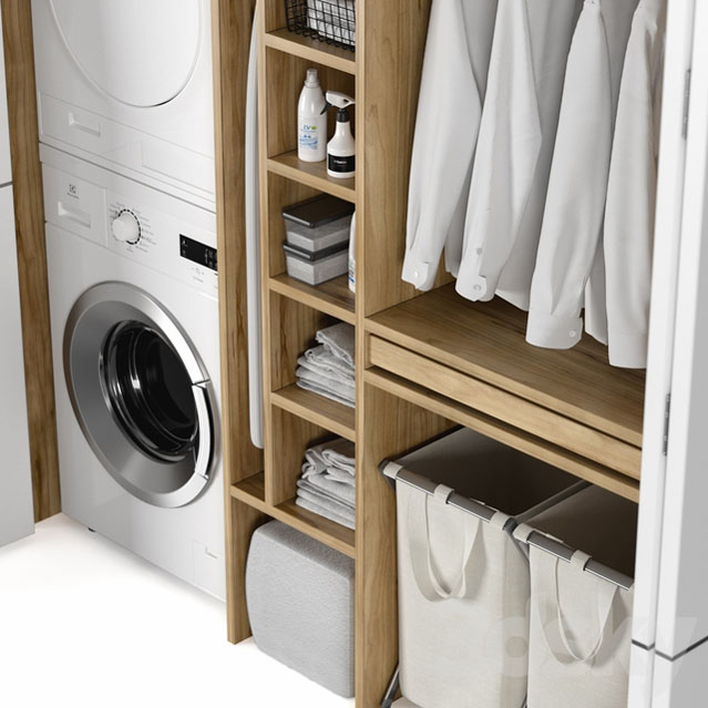 洗衣间衣柜洗衣机和衣服套装素材之家精选3D模型