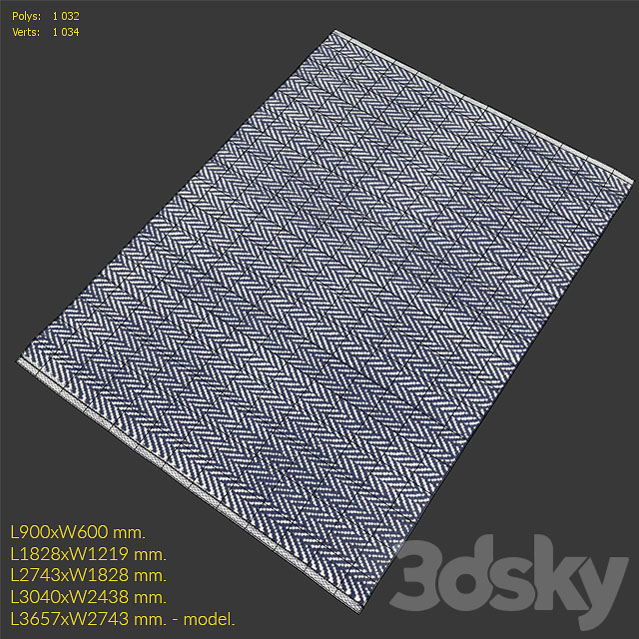 公司系列Dash&Albert Rug Indigo人字形型号的矩形地毯有5个尺寸比例的数据。 包括的MeshSmooth 0/1材质和纹理。 尺寸和poligonazh预览。
